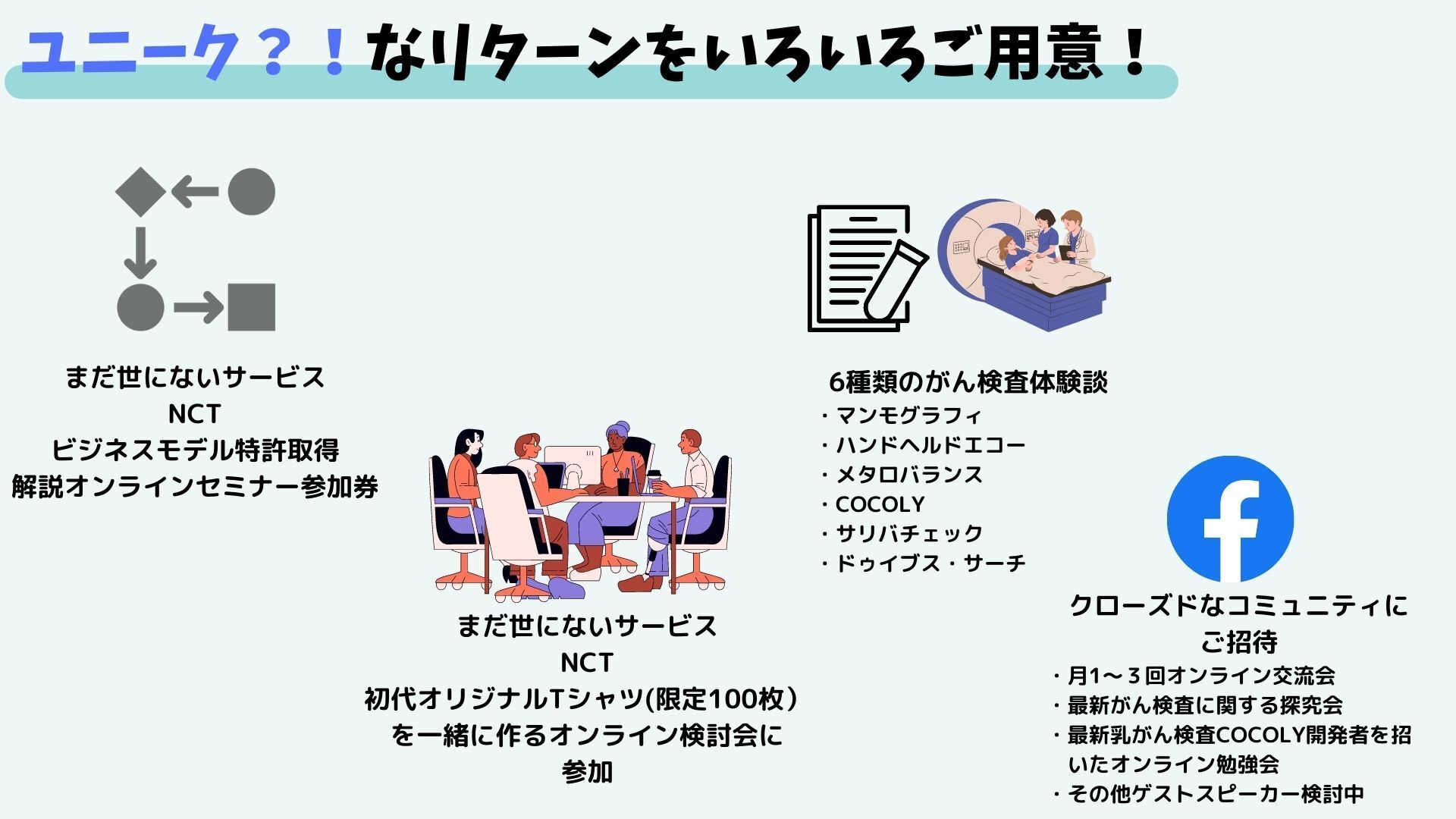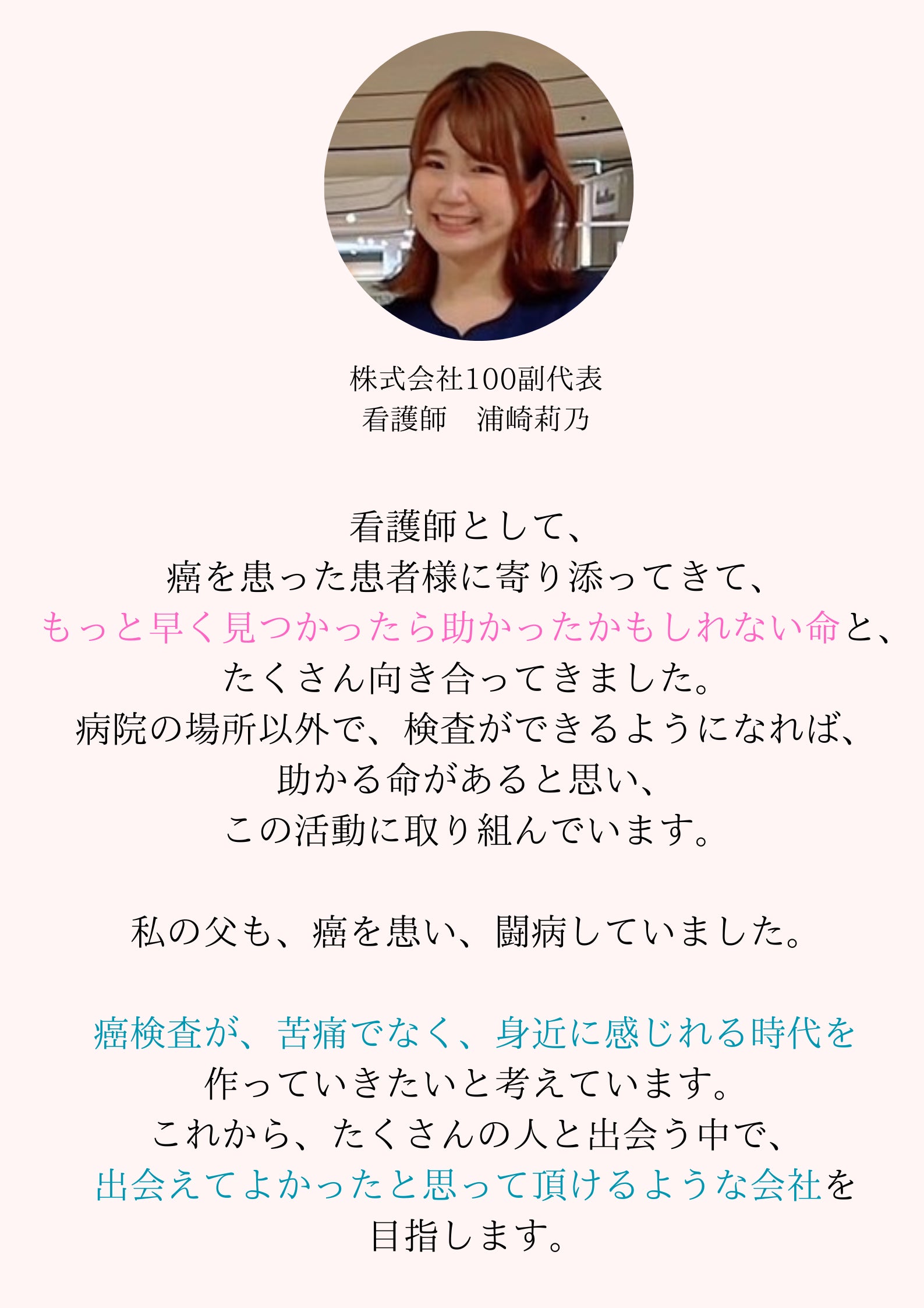 今回は、「医療機関以外で、がん検査が受けられる」というコンセプトに共感いただける方と