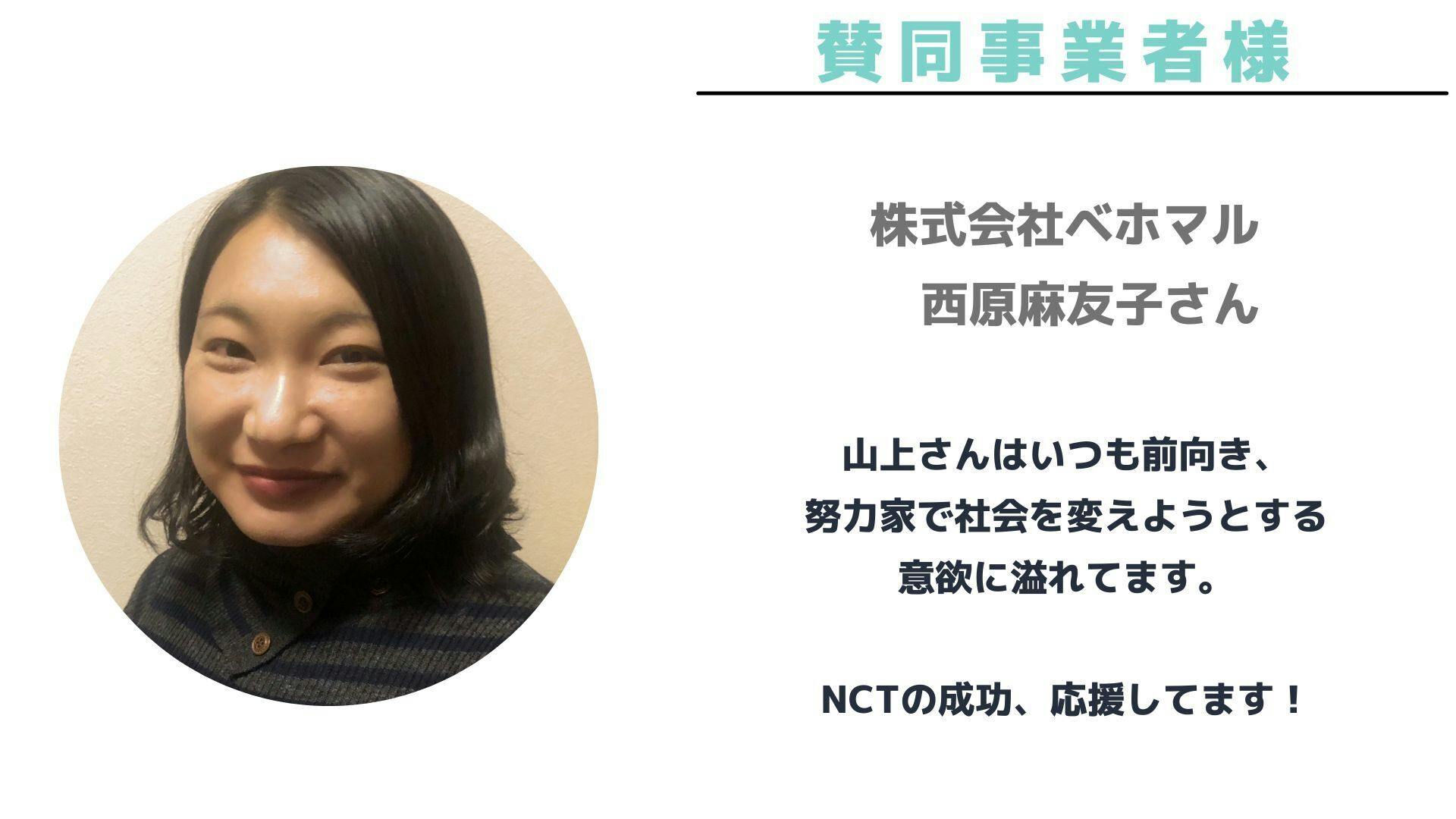 長文にもかかわらず、最後まで目を通して頂き、ありがとうございました。このクラウドファンディングを多くの方に知って頂き、NCT構想に、一人でも多くの方に共感頂けたら嬉しいです。まだ世にないサービスを手掛けるということは、とても勇気が必要です。是非、皆様からのご支援を勇気に換え、前に進む原動力にしていきたいと思っております。