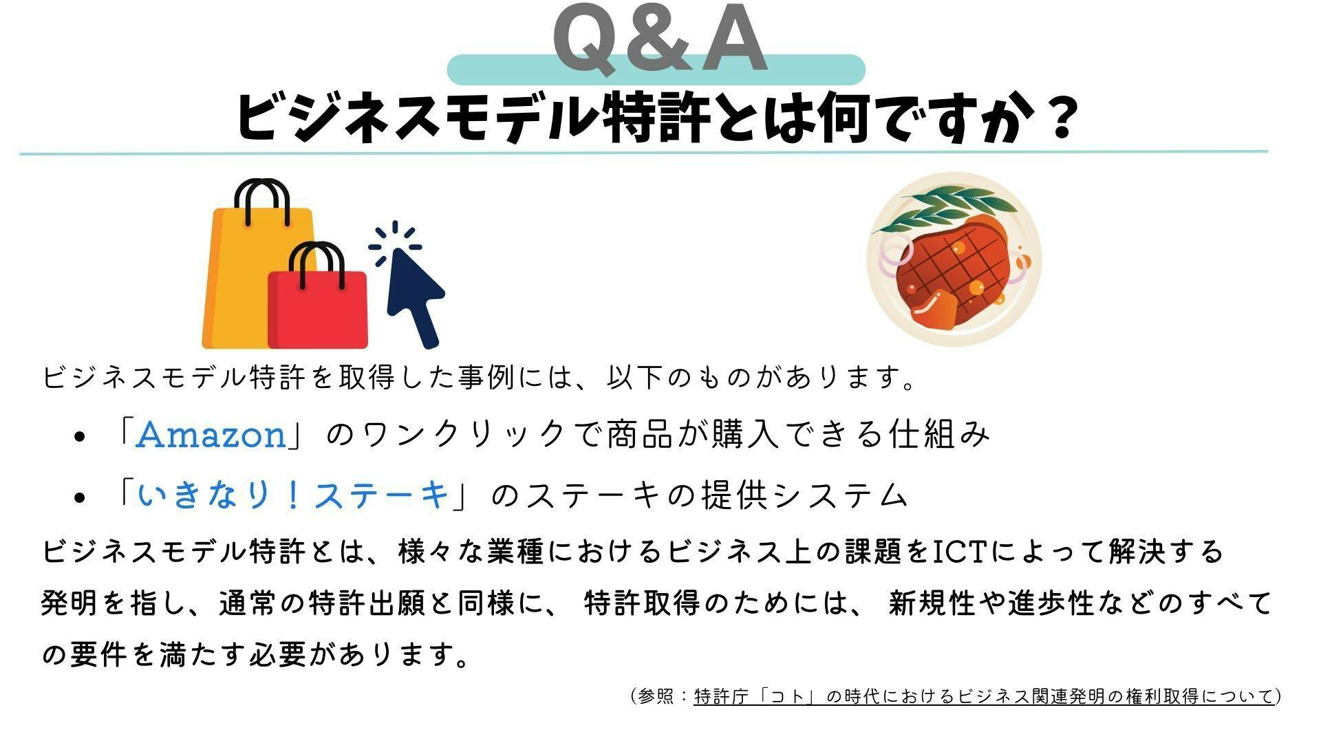 ビジネスモデル特許とは、様々な業種におけるビジネス上の課題をICTによって解決する発明を指し、通常の特許出願と同様に、 特許取得のためには、新規性や進歩性などのすべての要件を満たす必要があります。
