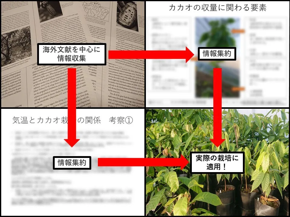 諦めずに「海外のカカオ研究論文」、「植物一般論」、「実際の栽培」の組み合わせによる仮説検証を行ってきました。