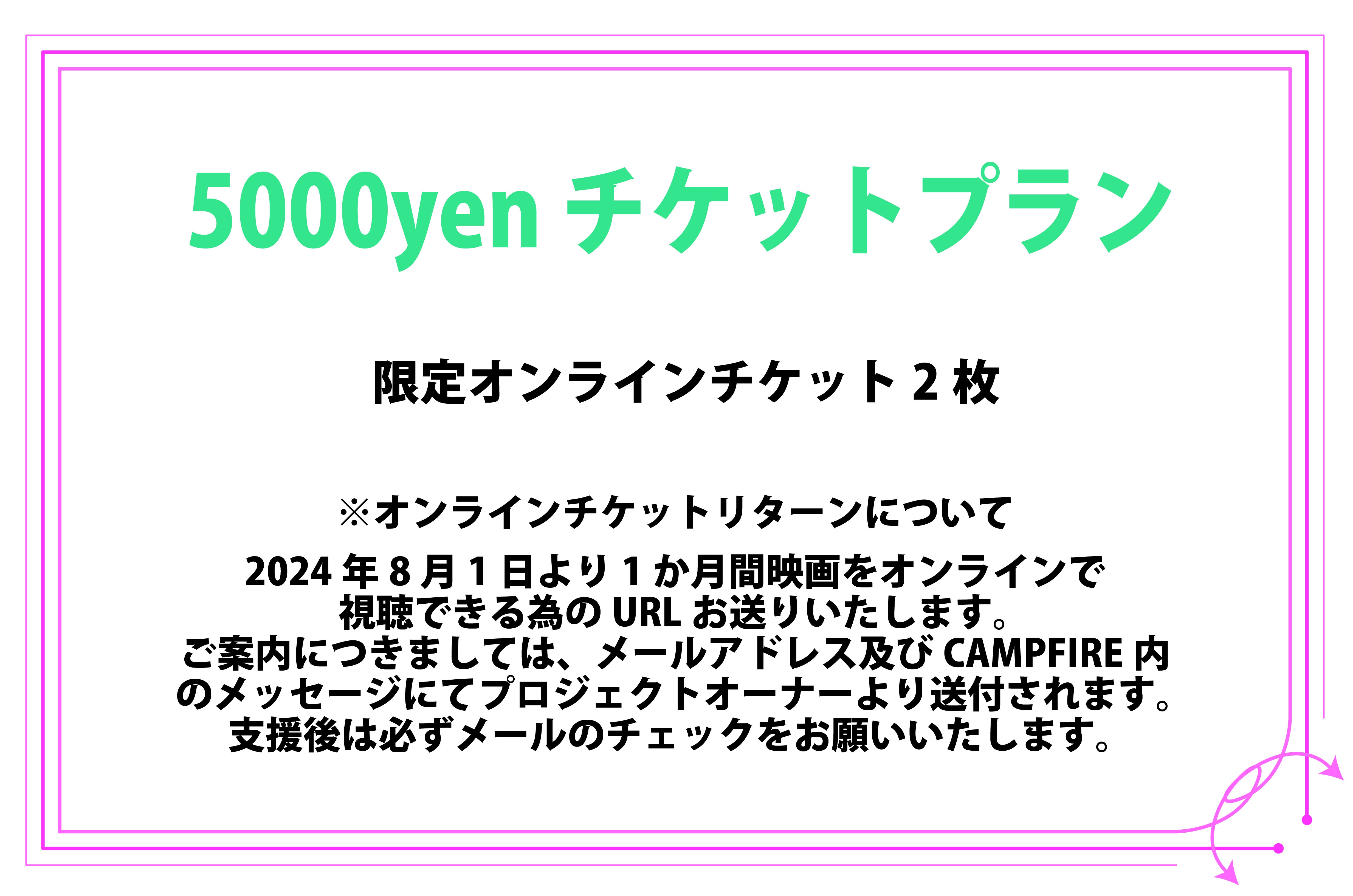 ・上映会権利とは:映画本編をデータ及びDVDorブルーレイ(郵送します。送料は、リターンに含みます。)にて上映会(CCTV装置、モニター、プロジェクター等を使って公に上映する会)を開催できる権利になります。期間が終わると権利は失いますのでデータ破棄及びDVDorブルーレイは、着払いにて返品お願いします。詳細のご案内は、プロジェクト終了後メール又は、CAMPFIREのメッセージ機能にてご連絡させていただきます。