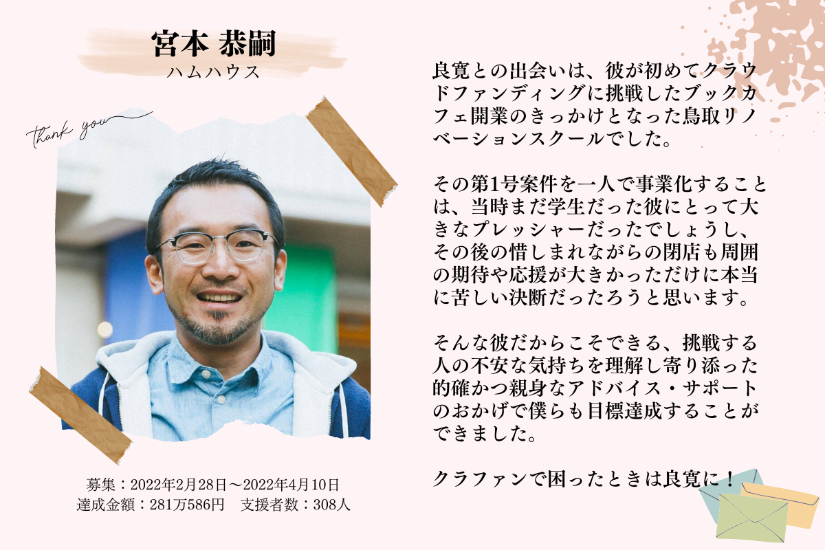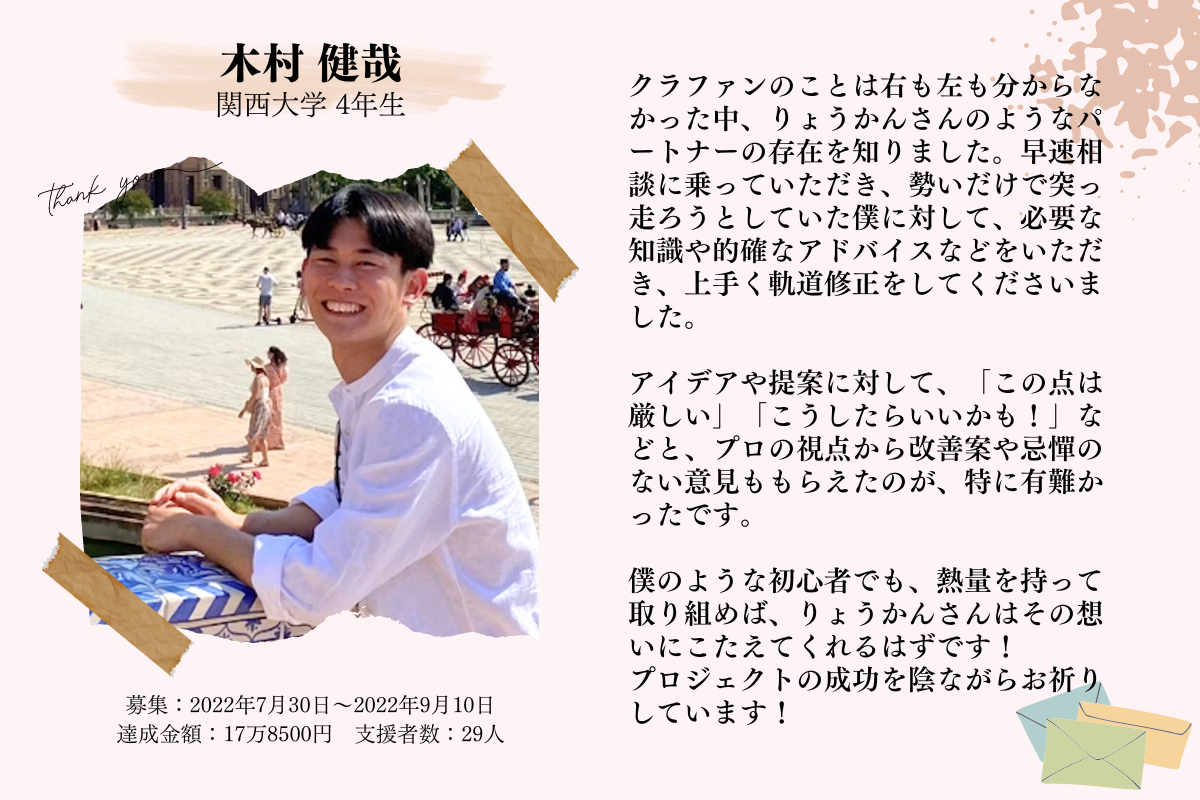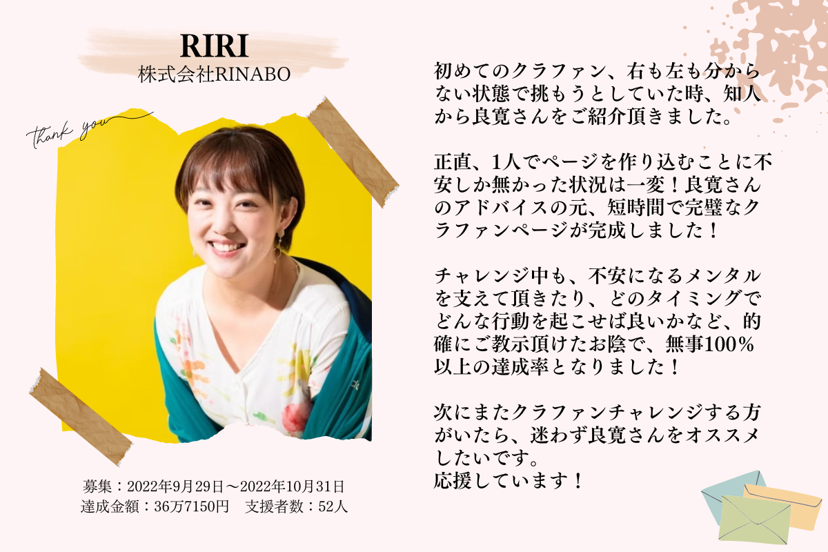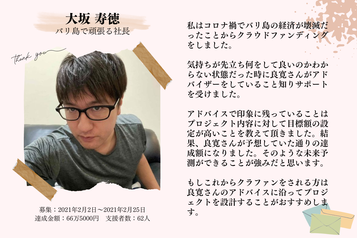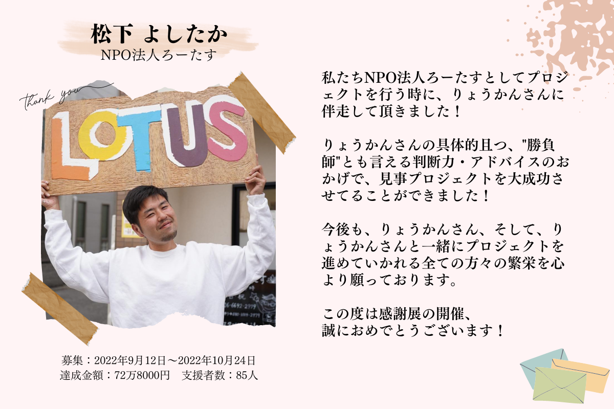 はじめまして!CAMPFIREパートナーの 岡田良寛(りょうかん) です。