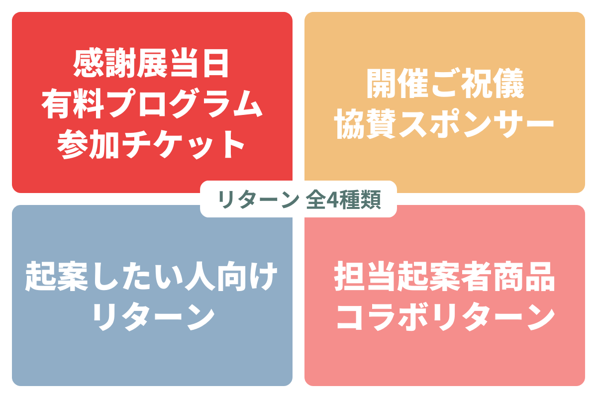 感謝展に参加するだけでなく、リターン選びも楽しんでいただけると嬉しいです!
