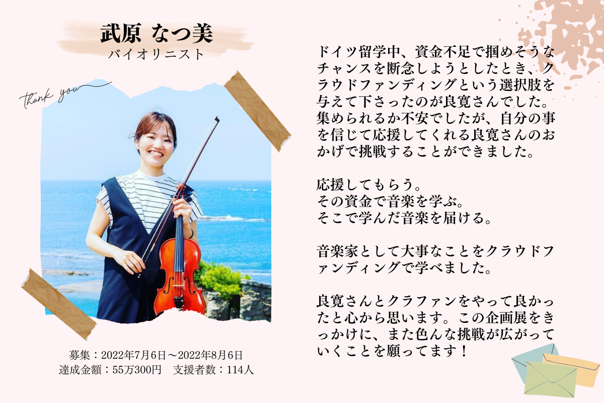 そう考えてきた中で思い付いたのが、今回のプロジェクトである【 クラウドファンディング感謝展 】になります。