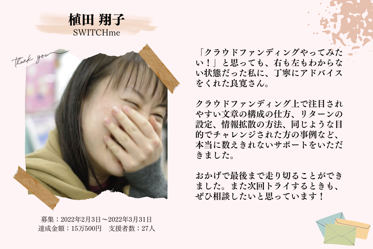 また、開催に伴って必要な資金以上に集まった場合には、クラウドファンディング起案者の伴走サポートを継続していくための活動費用として使わせていただく予定です。