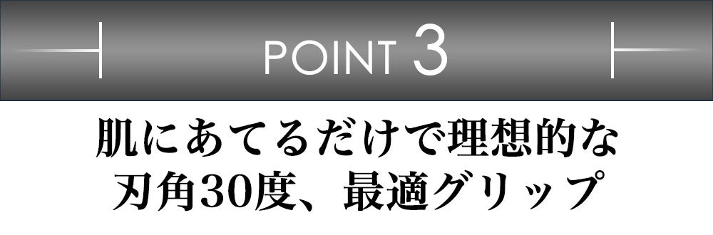 横滑りしにくいように、ヘッドの部分に溝を設けているので、肌にあて軽く下に滑らせるだけでスムーズに深剃りを実現させます。