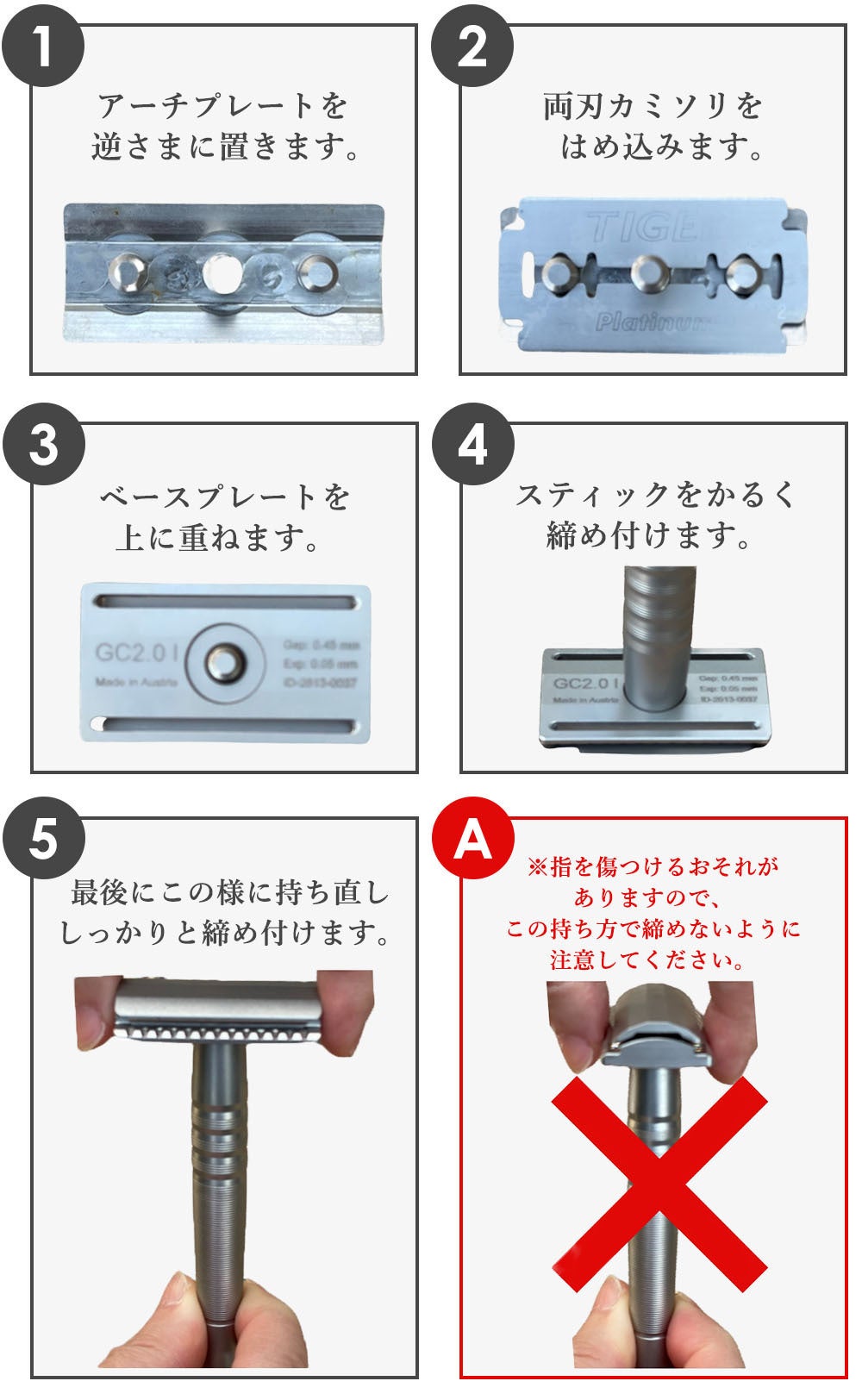 ヨーロッパ製にこだわっている【GC2.0】では、替え刃もチェコ共和国製の著名ブランドの「TIGER Platinum」をご用意しています。※