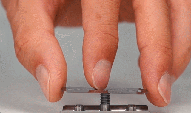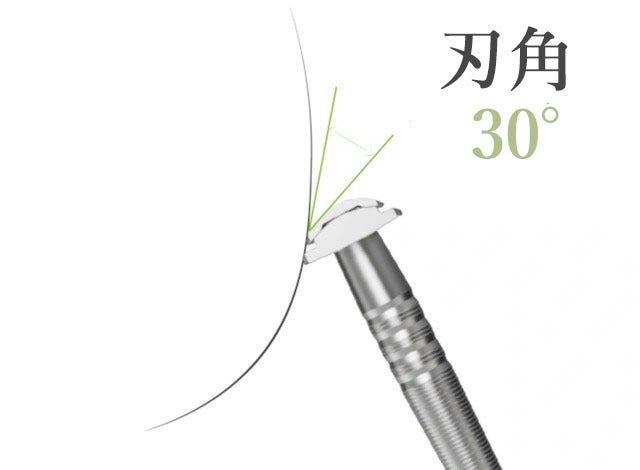 カミソリの替え刃をしっかり挟み、正確に刃角30度を作り出すには、非常に精緻な加工技術が必要です。