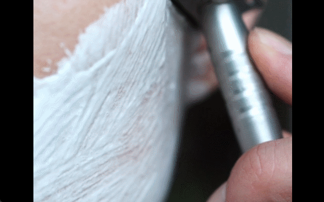 手に持った時に適度な重量感があり、そのまま重力に任せて刃を肌に走らせればフェザータッチで太い髭もスパスパと快適に断ち切ります。その時のジョリジョリという音と剃り味は正に快感!です。