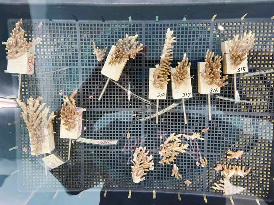 1点目は、サンゴ養殖の現場にあります。これまでの取り組みは沖坤からサンゴ養殖スティックの寄付だけでしたが、そこからが養殖のはじまりとなります。