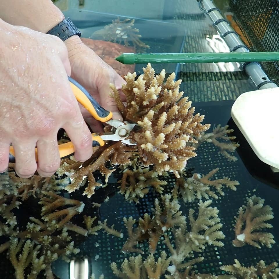 死滅したサンゴは元に戻らないため、新たにサンゴを養殖して育ててゆくことが必要となります。地球温暖化による負のサイクルを断ち切るには、保全活動のサイクルをつくって広げてゆかなければなりません。