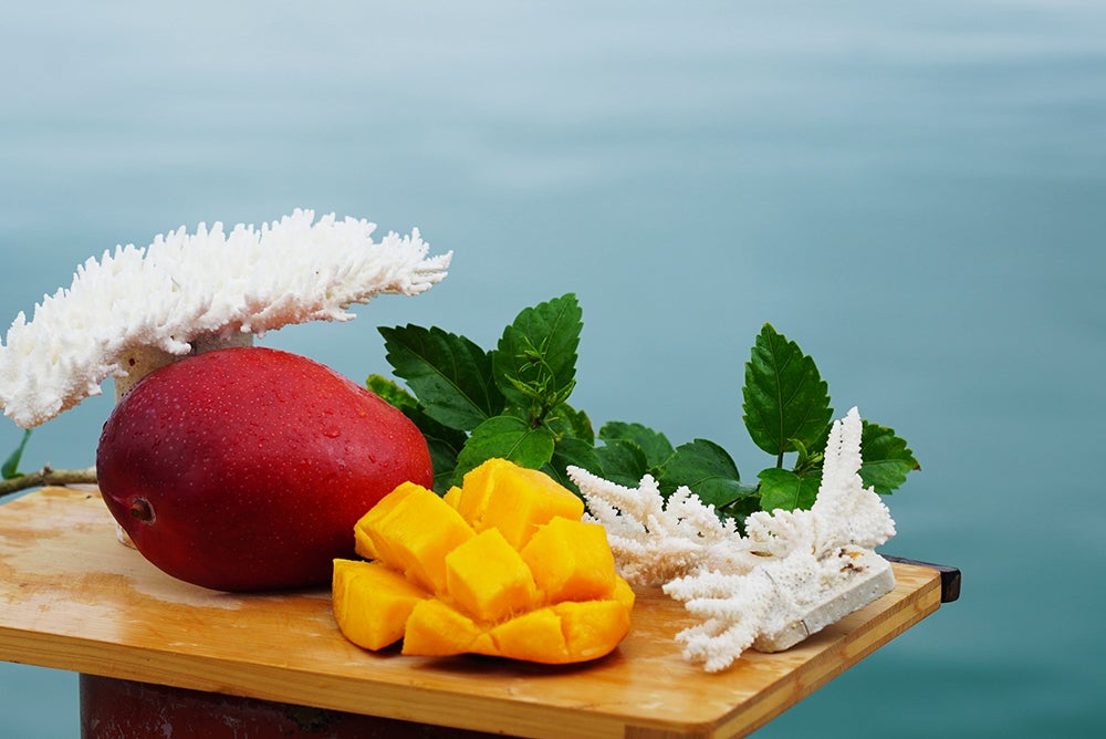 風化造礁サンゴのミネラル分に着目し、マンゴーの肥料として活用してつくった沖縄産のマンゴーです。沖縄のサンゴ礁に思いを馳せて、食卓の話題にしながらお召し上がりください。
