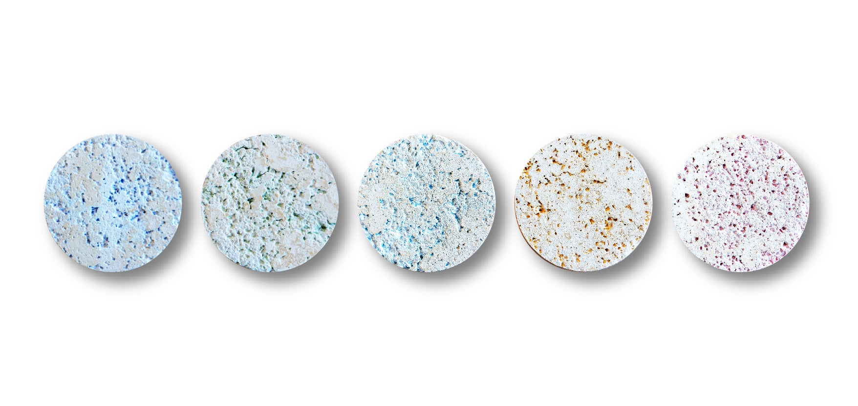 沖縄では高級建材として取り入れられる琉球石灰岩の風合いを再現したコースターです。特徴の細孔模様である「す」に、刺し色を加え、インテリアとしても馴染みます。お部屋の雰囲気に合う色で、生活に沖縄らしさを取り入れましょう。