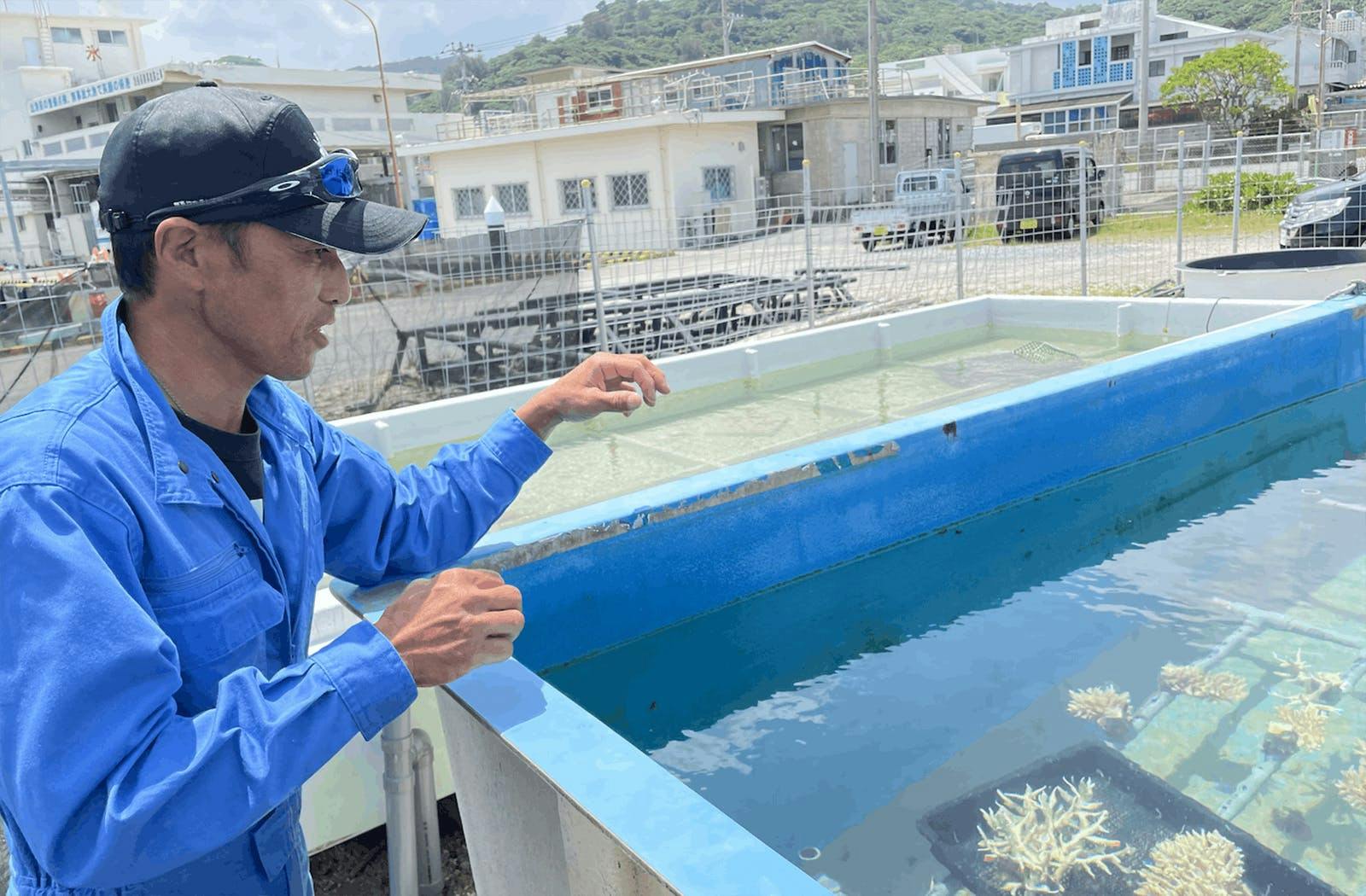 最近では、農業、死滅した風化造礁サンゴを活用した建材や、サンゴ養殖スティックなど、サンゴの保全に関係する製品づくりにも力を入れています。