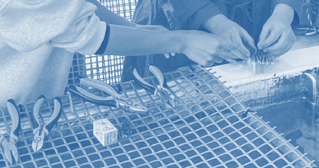 水槽で育てたサンゴの赤ちゃんを、養殖スティックに植え付ける作業をします。