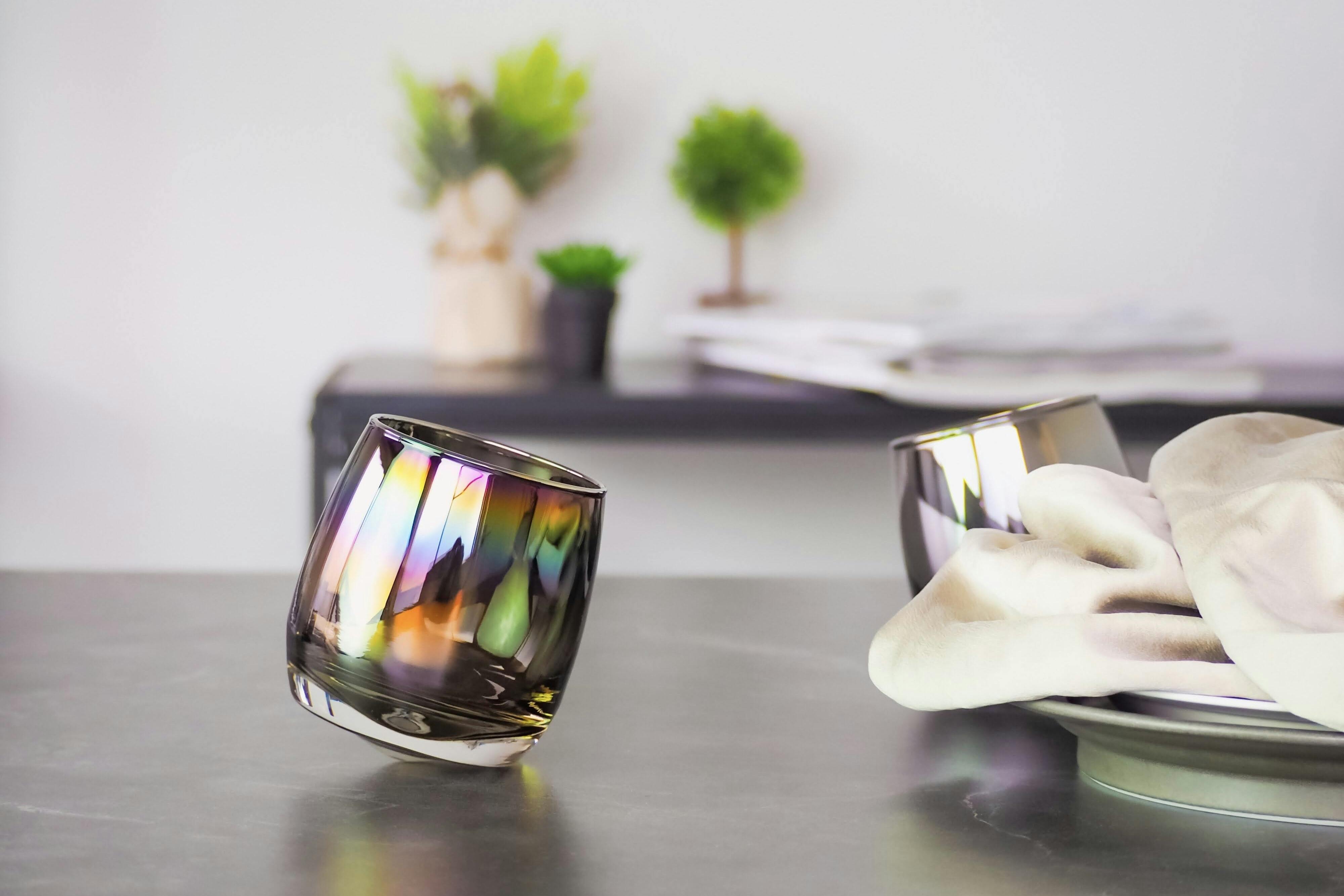古来より大自然の壮大な芸術と語られてきたオーロラをPROGRESS独自のナノテクノロジーにより再現しました。その光のアートは、人が古来より潜在的に心地よいと感じる小川のせせらぎや焚火の炎、波の音などと同じ1/fゆらぎを持っています。そして、グラスの中で注いだ飲み物の色が反射しゆらめくことも同じ1/fゆらぎです。1/fゆらぎを持つものを眺めたり感じたりしていると、人は、いつの間にか時間を忘れ心地よい穏やかさに吸い込まれていきます。それは、自分らしくいれる時間です。
