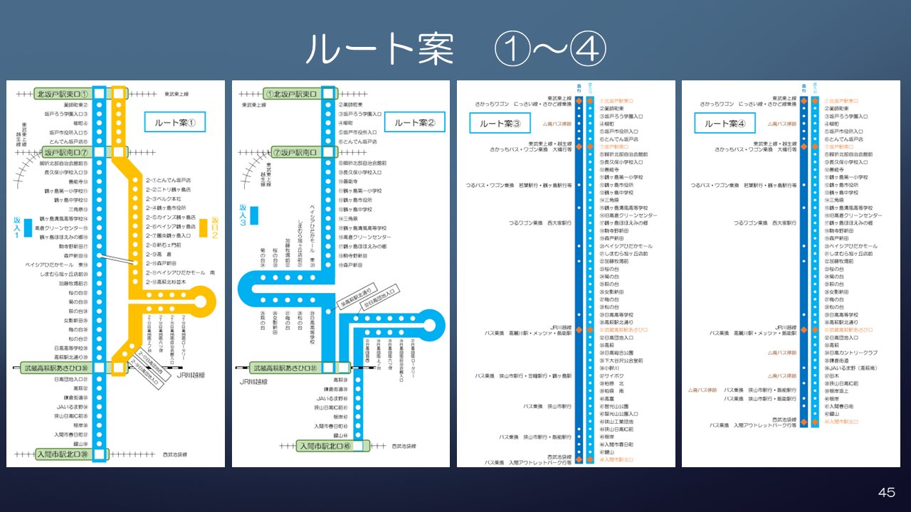 その中で北坂戸駅~坂戸駅~武蔵高萩駅~入間市駅を結ぶ路線バス設立を計画しています。