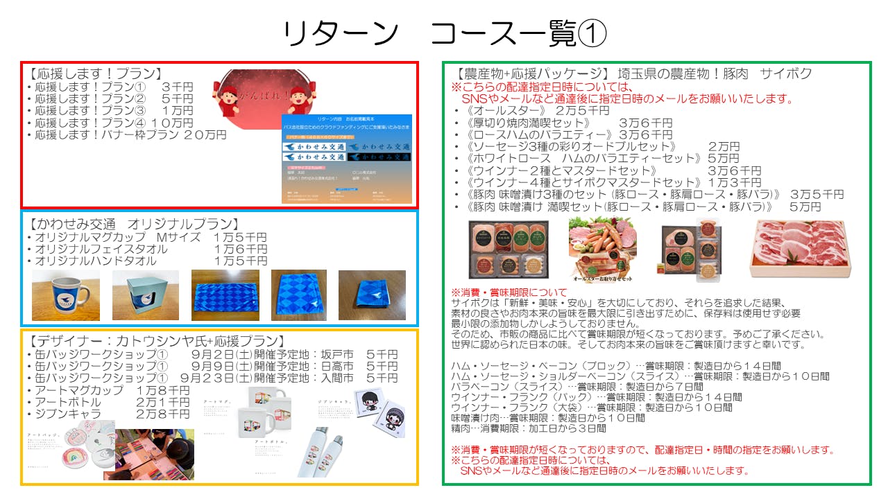 ●計画ルートで経由する日高市にある株式会社サイボクにもリターンのご協力を頂きました。