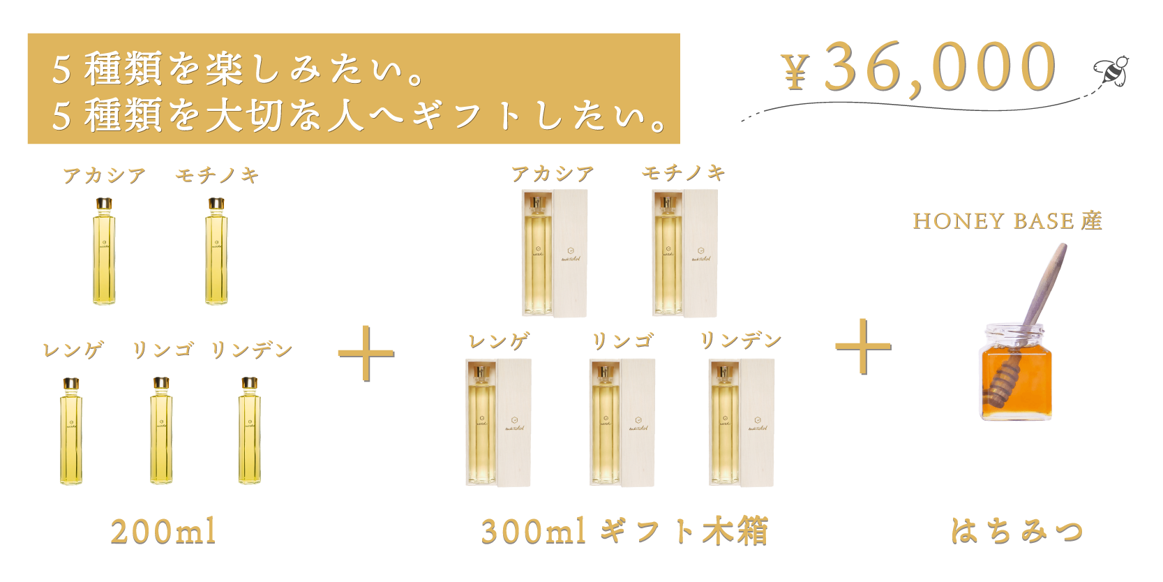 現在、meadolは5種類の商品を販売しております。種類ごとに異なる単花蜜を使用し、それぞれはっきりとしたキャラクターを生み出しています。