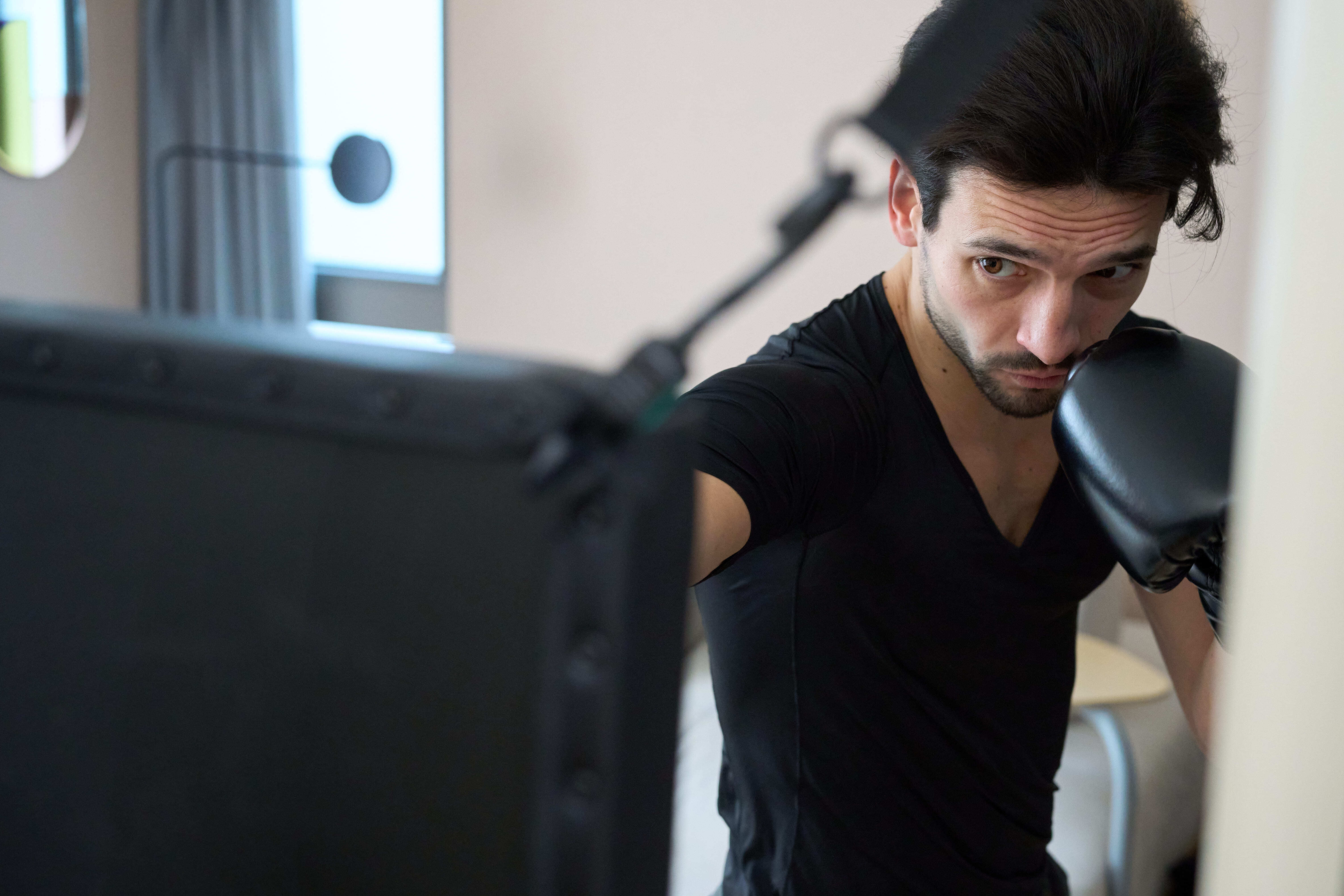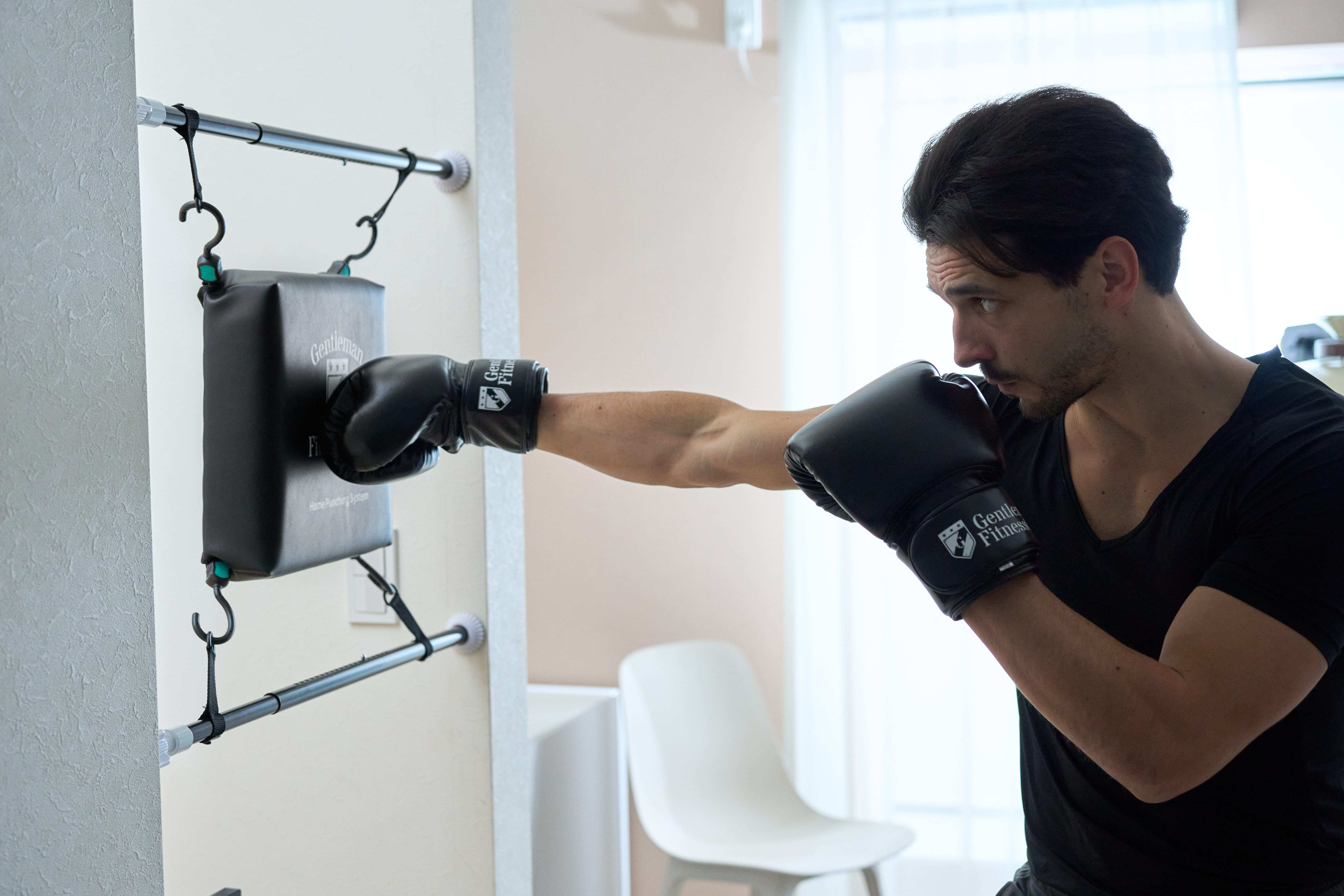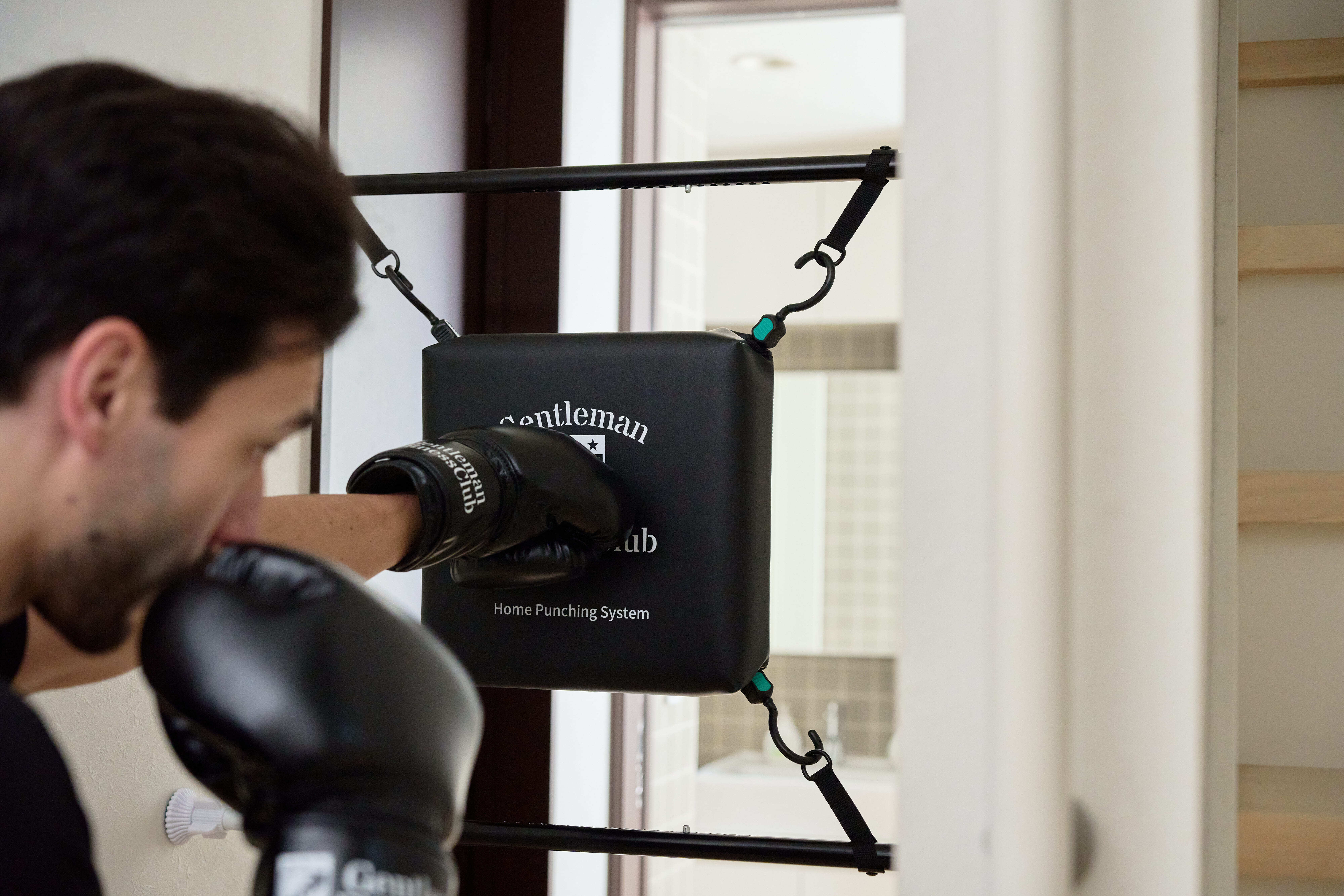 日本にはドアの間口等で使用できる懸垂バーがあり、そこから着想を得て今回のパンチバックを吊るすアイディアが出ました。