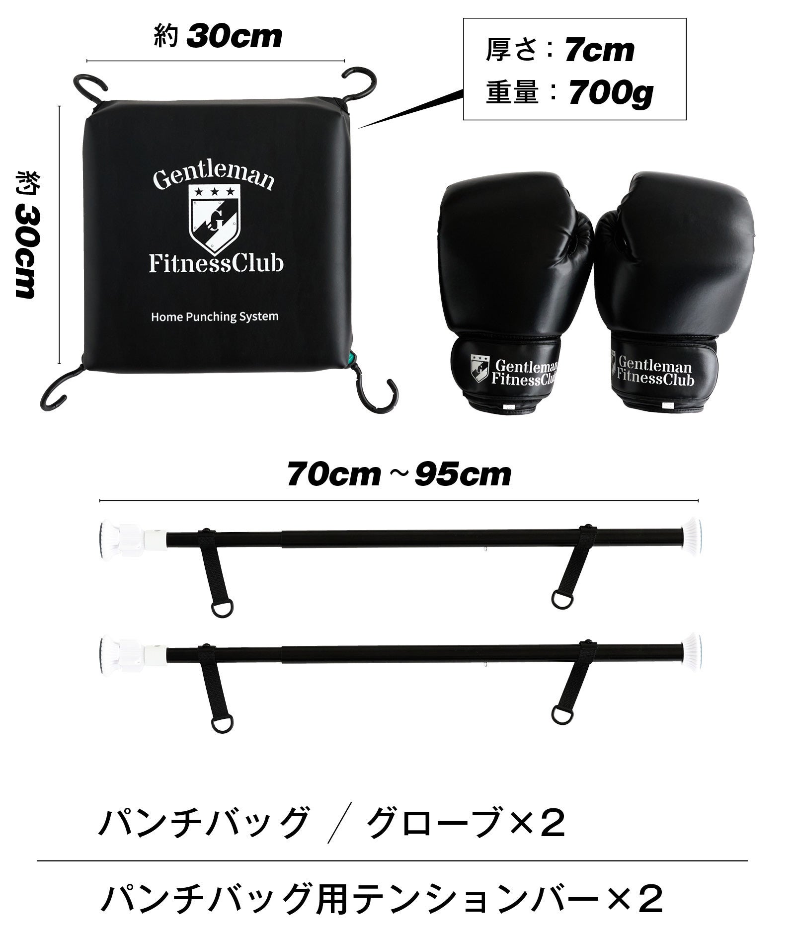 Q:パンチバッグ用テンションバーどの幅のサイズに取付可能ですか?