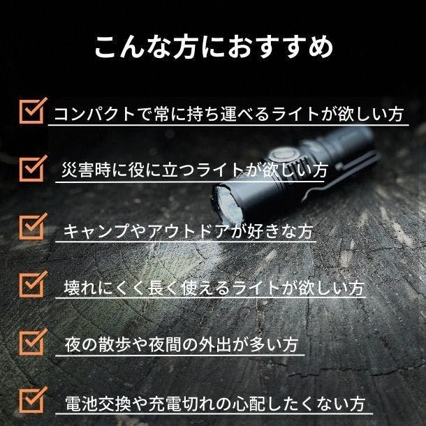 災害時からアウトドア、夜の散歩、日常持ちと、いざという時に活躍する頼りになるライトです!