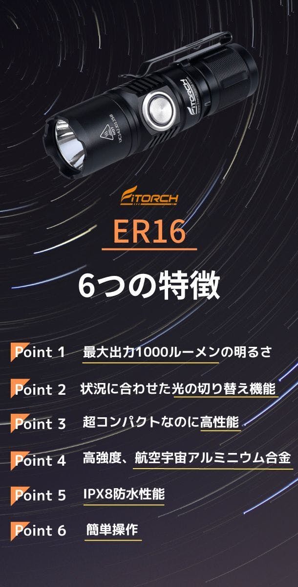 FITORCH(Fine & Fitの意味)では、お客様に「現実的、革新的、心のこもったサービス」を提供することを使命としており、今回、日本の皆様に当社最新作の「ER16」をご紹介出来ることを楽しみにしております。「ER16」は単なる懐中電灯ではなく、何年にも渡りあなたの生活をサポートする頼りになる相棒になることを心から願ってます。