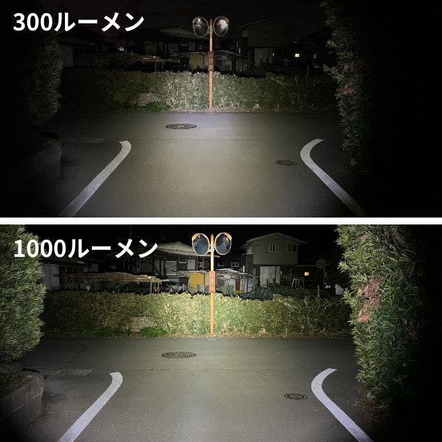 一般的な高輝度ライト300ルーメンと「ER16」1000ルーメンの比較