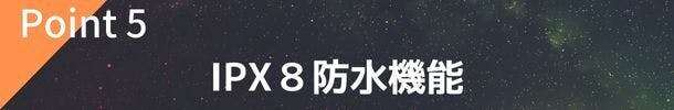 IPX-8は防水を示す数値のなかで高いレベルであり、水圧1.5メートルの深さで約30分間水に浸かっても問題なく、また衝撃にも大変強いです。非常に高い防水機能と衝撃耐性を持っており、災害時や大雨、アウトドア、マリンスポーツなどで大活躍します。