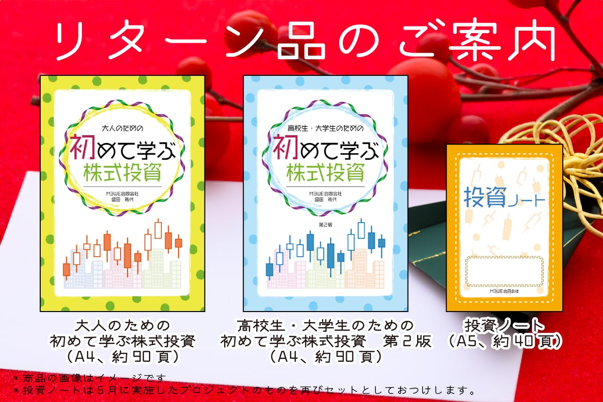 2023/07/24 11:00M3WEの盛田 祐代です。この度は、本プロジェクトにご支援・応援いただき、誠にありがとうございました。皆様のお気持ちが本当に励みになりました。無事に本が完成しましたので、7月21日に「高校生・大学生のための初めて学ぶ株式投資」の一般販売に関するプレスリリースを行いました。プレスリリースプレスリリースのリード文より(抜粋)本書は、株式投資に興味を持つ高校生及び大学生を対象にした投資の入門書です。老後に向けた資産形成を目的とするだけではなく、投資で得た情報を就職や起業に活用する点にまで踏み込んだ新しいタイプの投資の本です。株式投資をすると、経済をはじめ、世界の様々なビジネスモデルや経営者を知ることになります。例えば経営者が今起きている問題にどのように対応しているかも把握することができます。このような情報は、彼らが就職・起業した際に役に立つでしょう。銘柄選びや売買は、恋愛を事例に解説しました。なぜなら恋愛と投資の判断が似ているからです。例えば売りタイミングは「恋人の別れ」、分散投資は「一夫多妻制」でご紹介。株価チャートの分析も解説しています。新しいタイプの投資の本・目次「目次を見ると普通の投資の本と全然違うね」と感じられるかもしれません。しかし投資の知識は難しく学ばなければいけないということはないのです。初めて株式投資を学習するなら難しいより楽しい方がいいのではないでしょうか。記事ページ・株式投資とはなぜ世の中に株式投資が必要なのでしょうか。それがないとどうなるのでしょうか。その理解を深めることで株式投資がギャンブルではないということがわかります。・売りのタイミング株式投資をする時、売買のタイミングはとても重要です。「売り」については、「恋人との別れ」を事例に解説しました。・分散投資分散投資は、一夫多妻制を例に取り上げました。日本では一夫多妻制は禁止ですが、もし株式投資を行う上で1銘柄に集中投資したらリスクが大きくなります。そのあたりについても丁寧に解説しました。メッセージ私の元上司でもあり、本書の校正を担当した元週刊ゴールデンチャート編集長 湯山 澄夫氏(有限会社教文社代表取締役)よりメッセージをいただきました。ーーー若い人達にとって投資を始めることは、未来の幸福を買うという事だと思います。私が大学生の頃はまだアップルやマイクロソフトは、パソコンというマニア向けの小型ボードコンピュータに、当時大型汎用コンピュータ主流だったビジネス電算業務のシステムを搭載できるようにした画期的な動作環境を発表したばかりでした。私はこのOSを動作させるプログラミングに没頭しても、自分が大ファンの会社の株に投資しようなんて思いませんでした。あの頃の私が本書に出会っていたら、今頃私は億万長者でした。みなさんぜひ今から創業したばかりの天才経営者の会社に投資を始めて下さい。ーーーご予約受付中ご予約はこちら*個人の方も1冊からお求めいただけます。ただし、環境に配慮し弊社では在庫を持たない仕組みで出版しますので、納品までに2〜3週間かかります。*クラウドファンディングで作成したものを少しだけ改良して一般販売します。掲載する記事は同じですので、クラウドファンディングでお求めになった方がこちらをご利用いただくと同じものが2冊手元に届く形になります。ご注意ください。 もっと見る