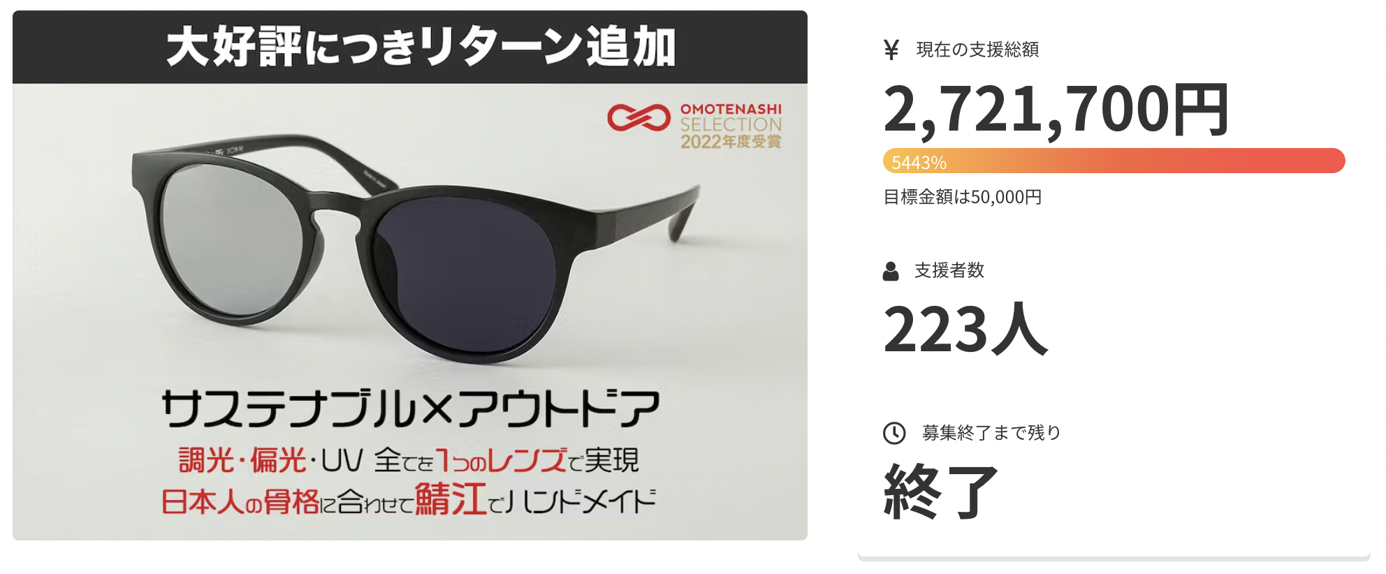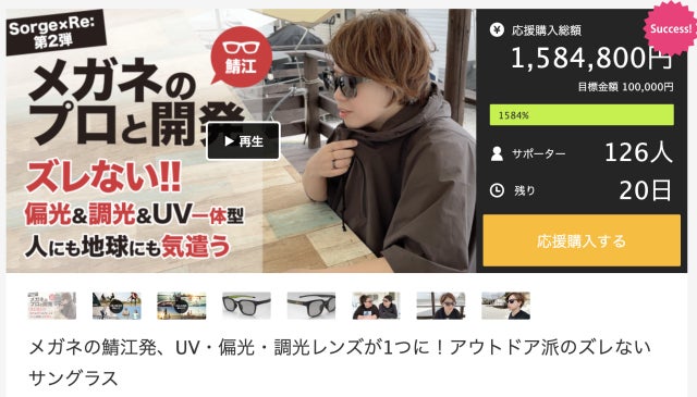 【再登場】ゾルゲサングラスがCAMPFIREにて公開されました
