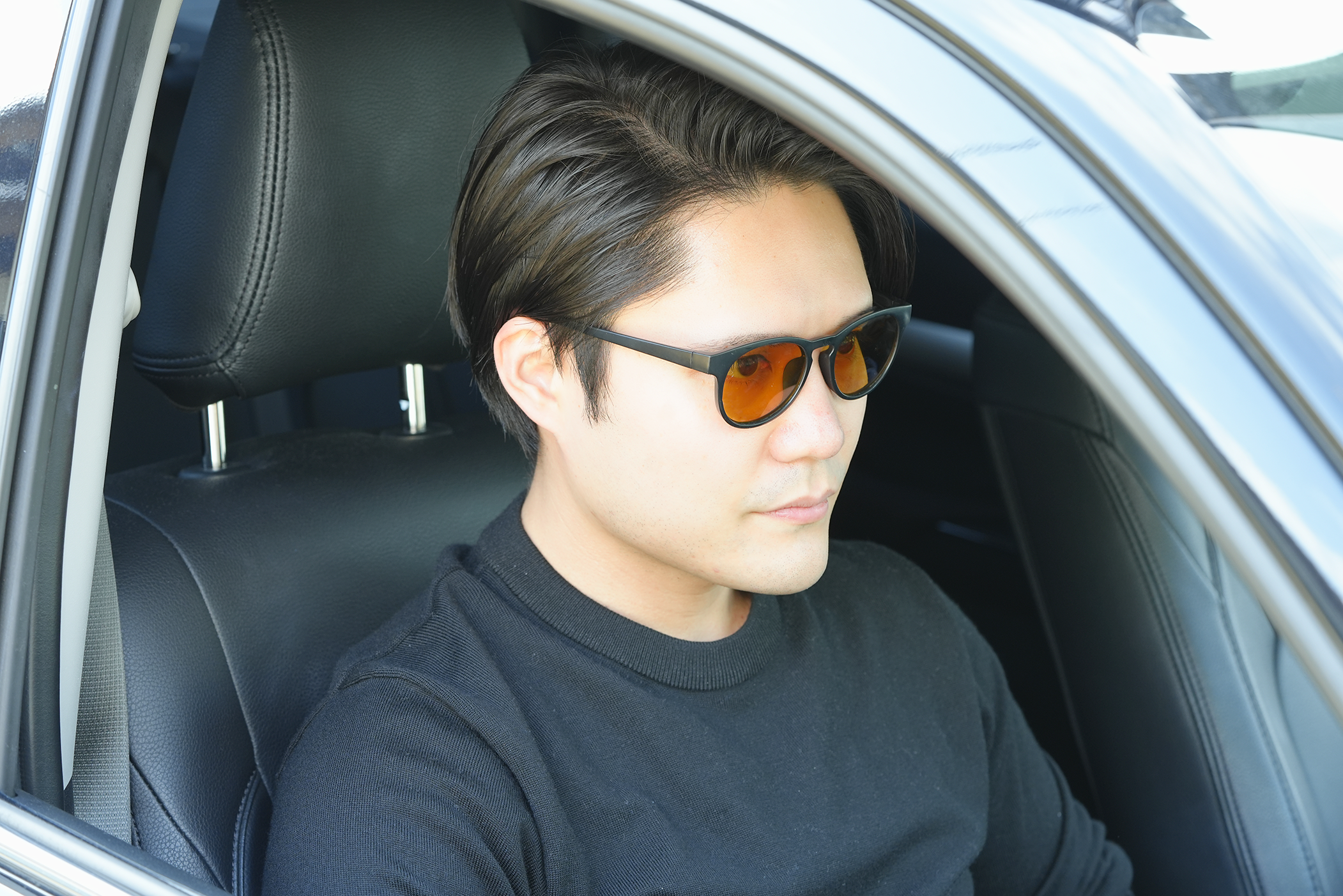 弊社のレンズは、自然の流れに逆らわず紫外線の量で調光するため、フロントガラスに紫外線カット機能が備わっている車の運転時や、紫外線の量が少ない場所で着用した場合には、レンズの色が変化しません。