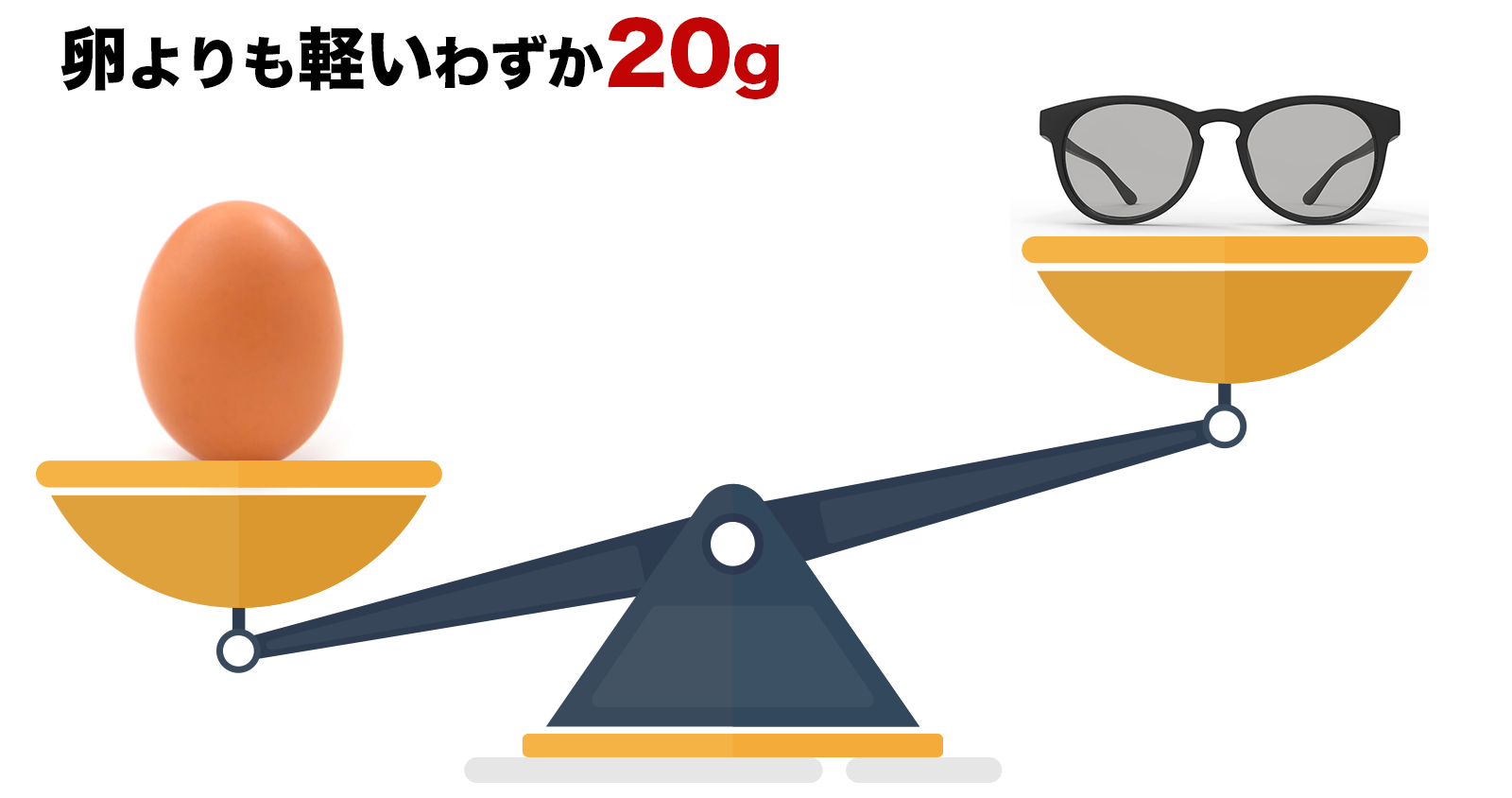 さらに、20gと超軽量でかけていることを忘れさせるほど。長時間の使用でも楽にご使用いただけます。