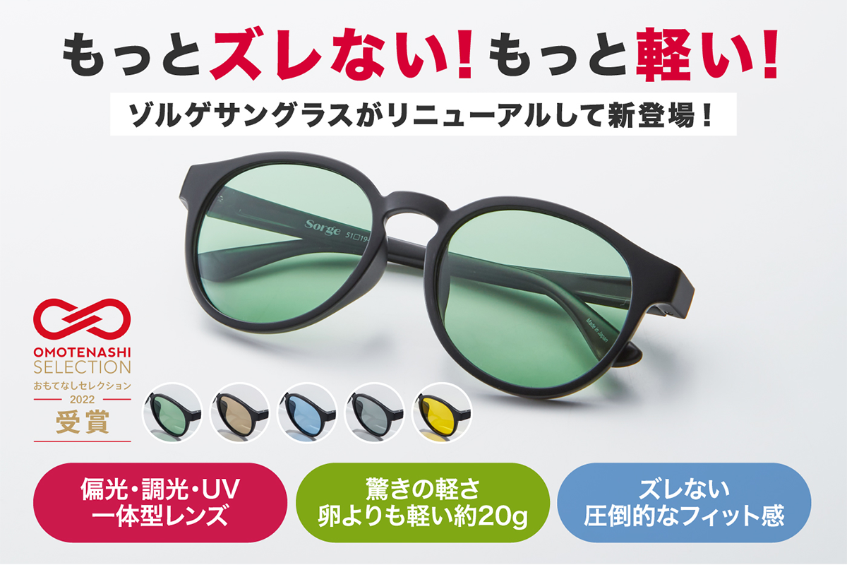 ゾルゲサングラスは、「調光・偏光・UVカット」全てを1つのレンズで実現!