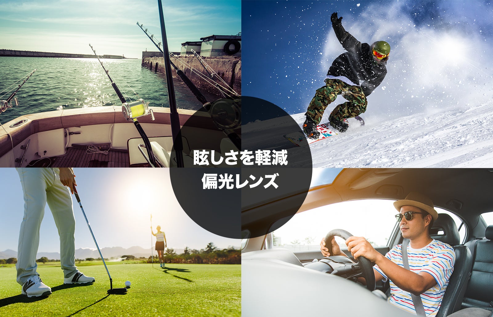 地面や水面からの光の乱反射だけをカットして視界をクリアにしてくれるので、車の運転や釣り、マリンスポーツなどをより快適に楽しむことが可能です。