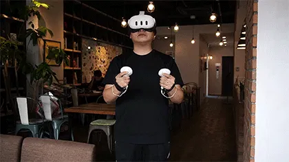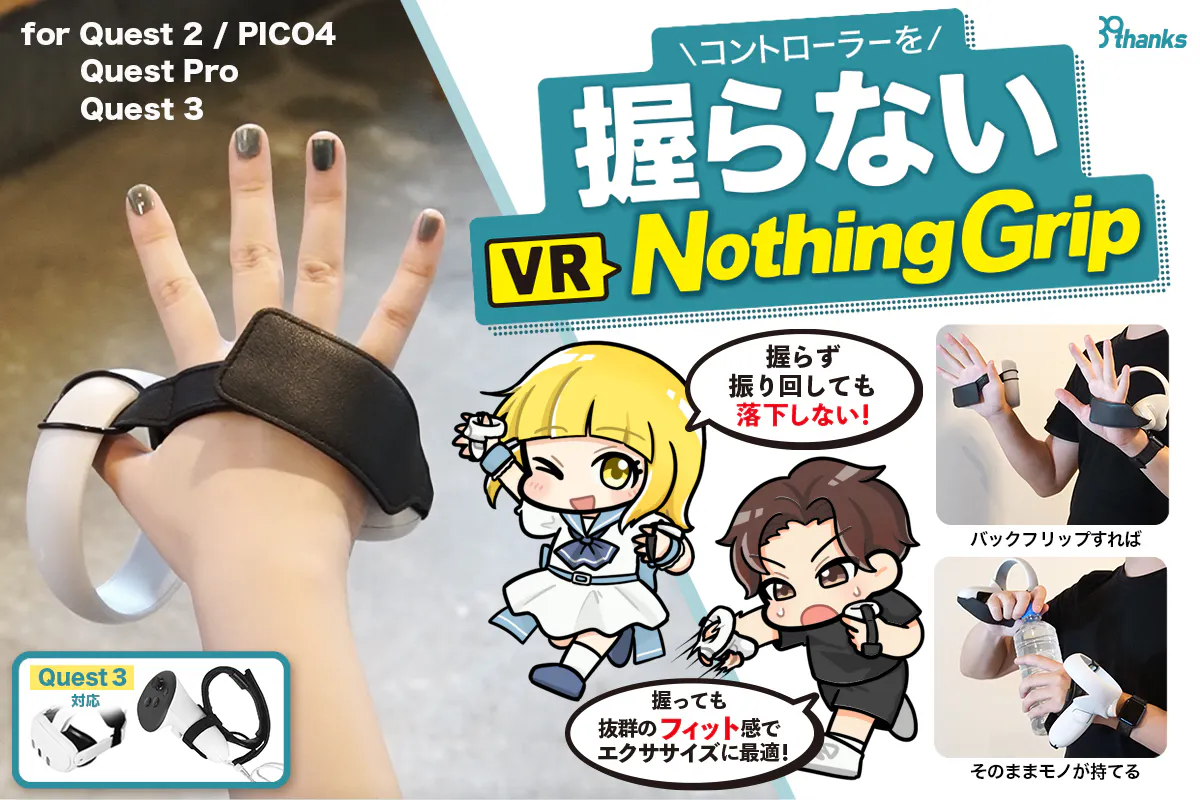 「Nothing Grip」なら、先にコントローラーを手元にもったまま(バックフリップしたまま)最後にVRゴーグルを取り付けることができるので、その後のVR所作がスマートになります。