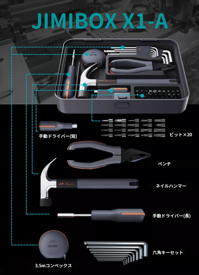JIMIBOX X1-Aは、日常のDIYシーンで最も使用する基本的なツールを揃えました。