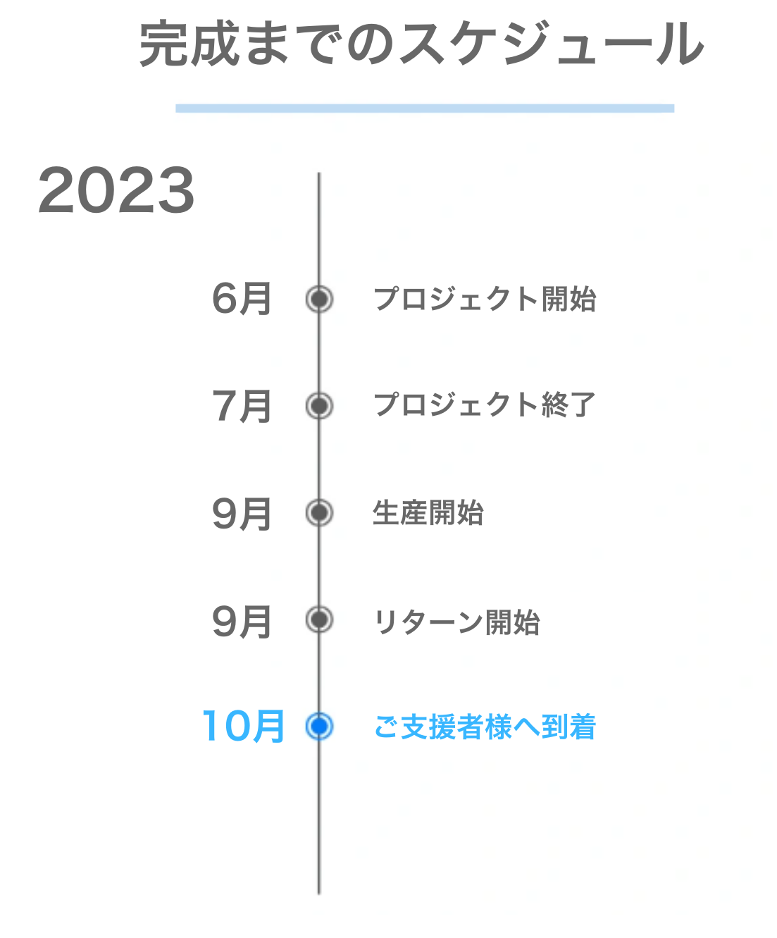※本文中に記載させていただいたスケジュールは、あくまでプロジェクト公開時点の予定です。クラウドファンディングの性質上、配送遅延のおそれがございます。