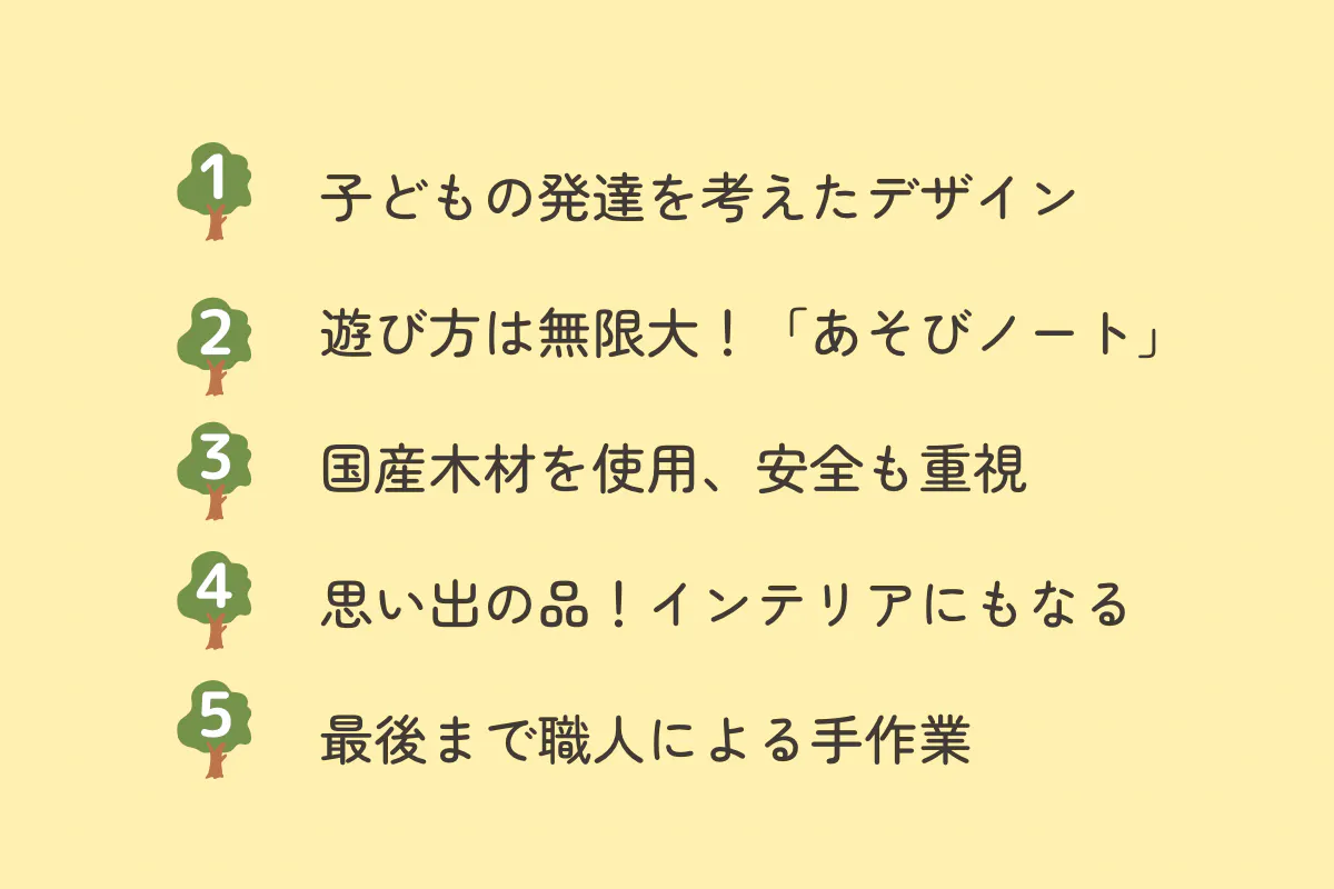 木のおもちゃの良さはたくさんあるのですが、私たちは特に次の2点だと感じています!