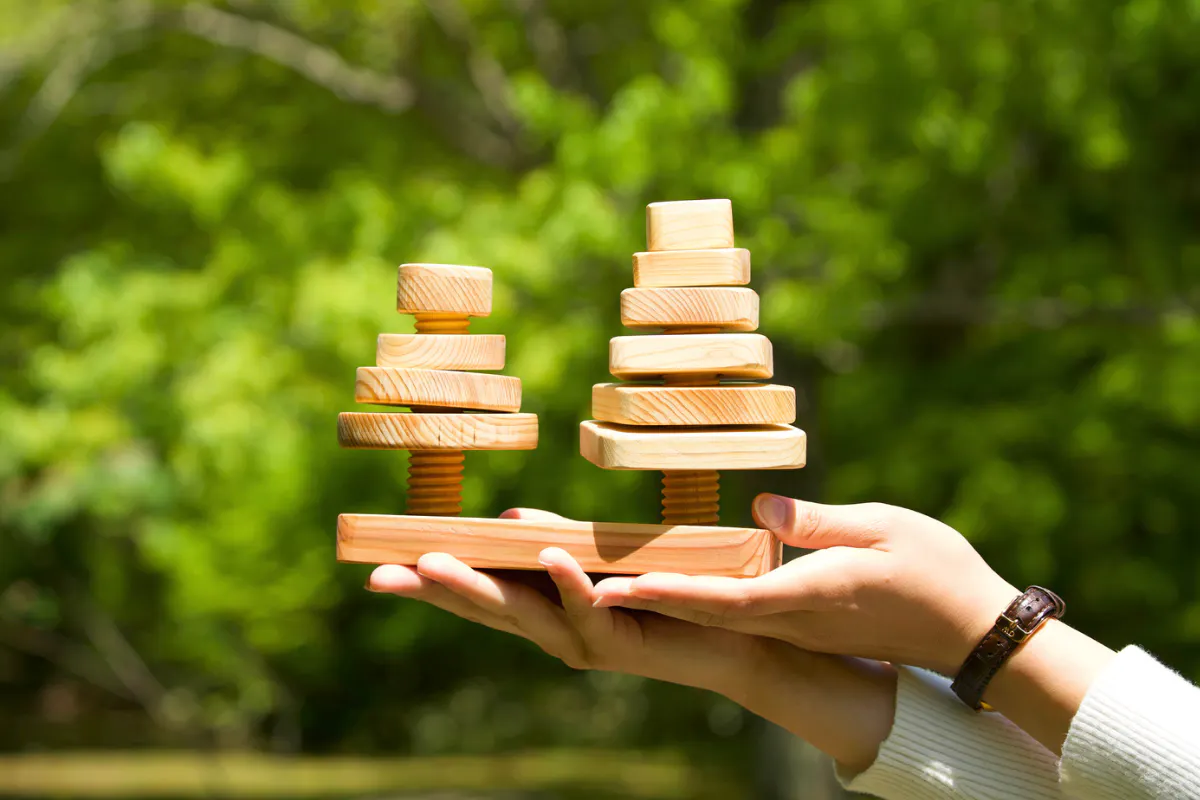 未来の子どもたちに健全な森林、そして木のある遊びを残すためにいまできることの一つが、木のおもちゃで遊ぶことなのです。