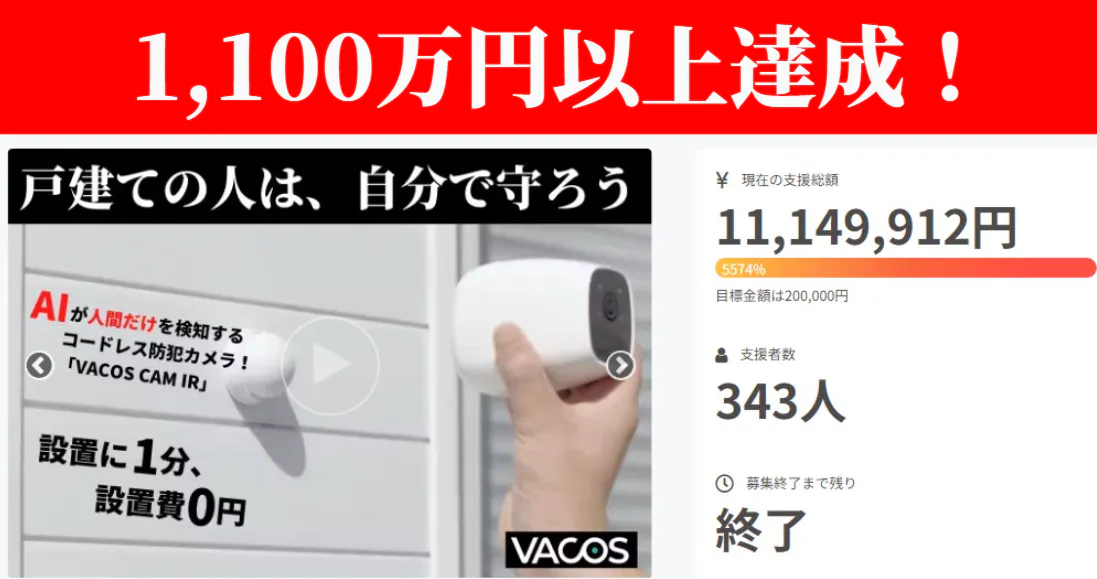 前回のキャンペーンで1,100万円の売上を記録したVACOS CAM IRの開発メーカーが、最新の防犯カメラを遂にリリースいたしました。