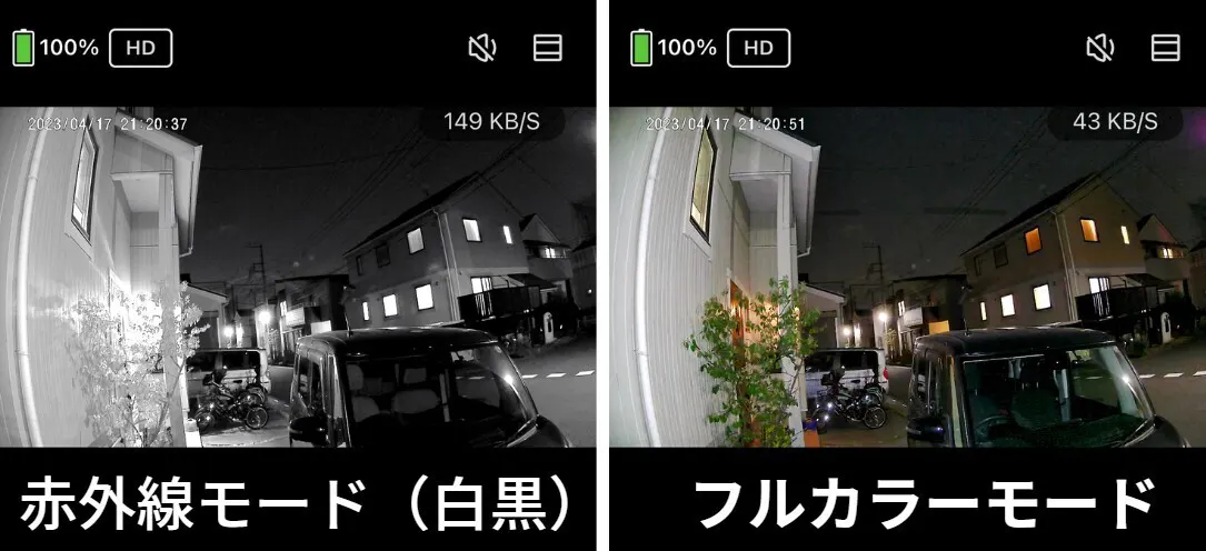 夜間は常にカラーで映像を映し出し、ライブストリームも常にカラーです。