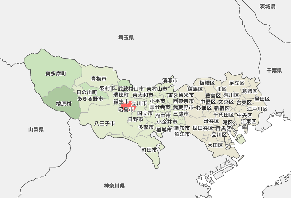 「昭島って、どこかの島?」なんて言われることもありますが、東京都多摩地区のちょうど中心部にある市です。