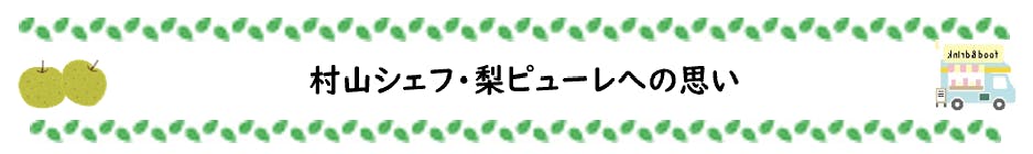 村山シェフの中には、ある思いがあります。料理人は、料理をして提供すれば、「おいしい」と言ってもらえる。でも「おいしい」の言葉は、生産者さんに直接届かない。生産者さんの思いを乗せた料理を提供したい。生産者さんが一生懸命育てた食材を無駄なく提供したい。村山シェフの思いを「梨ピューレ」に乗せて表現することに挑戦します。