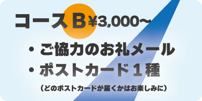 コースB~Dは、登録したメールアドレスに後日『お礼のメール』と、3種類あるポストカードをそれぞれ規定の枚数をそれぞれ送付致します。デザインについては現在制作中です。完成次第『活動報告』にて連絡します。