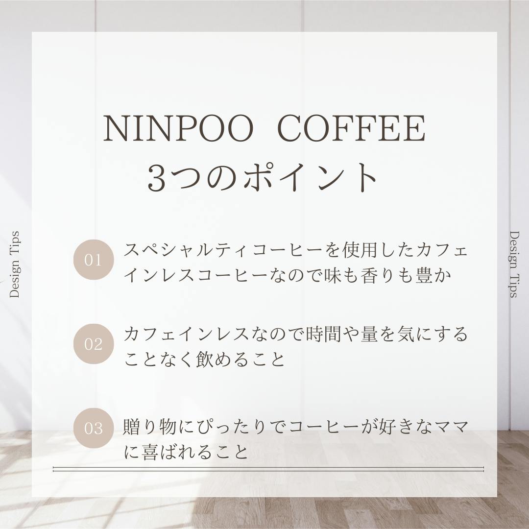 「スペシャルティコーヒーを原料にして作ったカフェインレスのコーヒーNINPOO COFFEE/ニンプーコーヒーです。