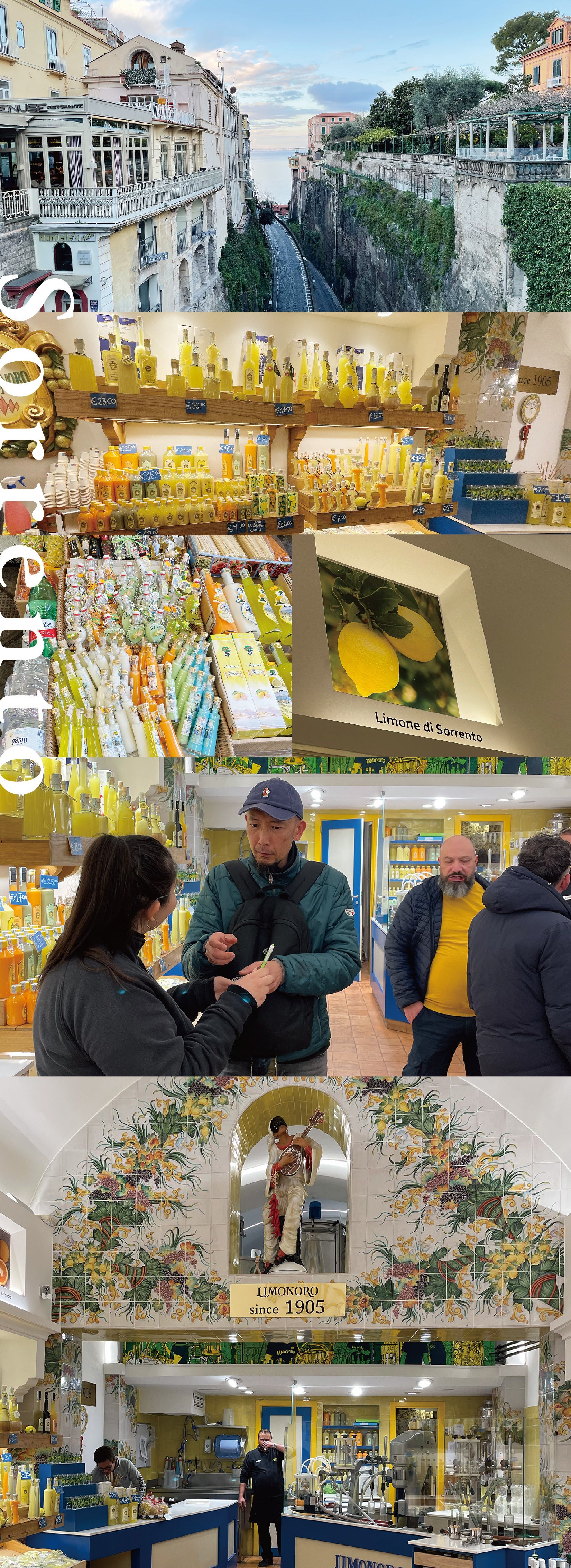 ソレントでは、1900年から伝わる伝統的なレシピを教わることができ、わたしたちの商品改良に大いに役立てることができました。ソレントはアマルフィ海岸に近いエリアに位置し、美しい海岸線や古い町並み、豊かな文化が魅力の地域です。また、ソレントはリモンチェッロの生産で有名であり、その技術や伝統が受け継がれています。