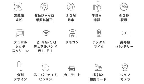 ・Wifi接続・専用アプリで端末に繋げることができ 撮影した映像をすぐに転送できたり 多彩な撮影モードを楽しめることができます