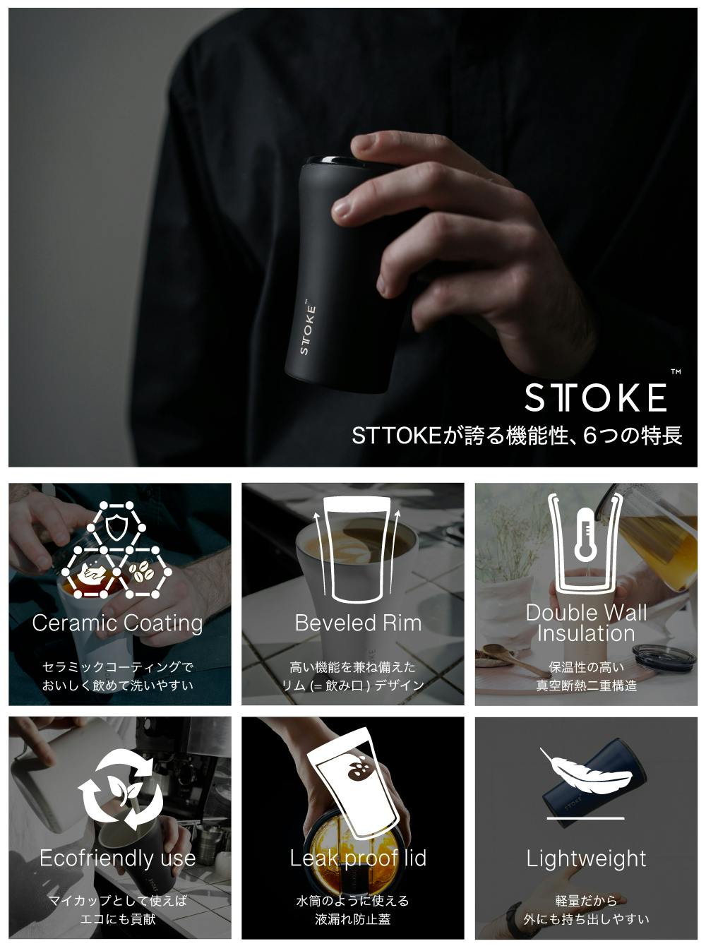 「ワクワクと奮い立たせること」を意味する「Stoked」を由来とし、持っているだけで期待が高まる、端麗かつ優美な雰囲気が特長。また、ステンレス素材をベースに、内側には陶器と同等の効果を持つセラミックコーティングを施すことで、金属とは思えない優しい口当たりにも自信があります。