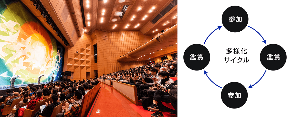 舞台を鑑賞する人たちにおいては、作品の持つ異文化理解のメッセージを受け取ると共に、出演者たちが織りなす「個性の響きあい」に触れることで、「自分もなにかやってみたい」と行動を起こすきっかけにもなっていきます。